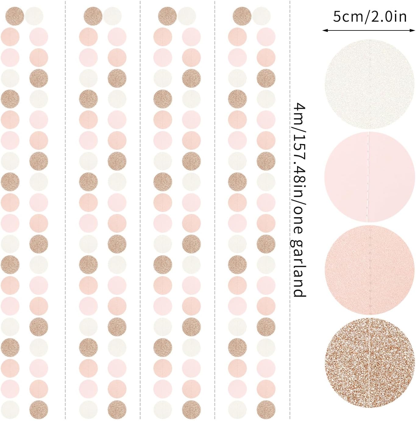 - PACKAGE CONTAINS: This set has four champagne gold white circle paper garland,the length of each strand is 4 meters/13 feet, the total length is 16 meters/52 feet.The size is 2IN.