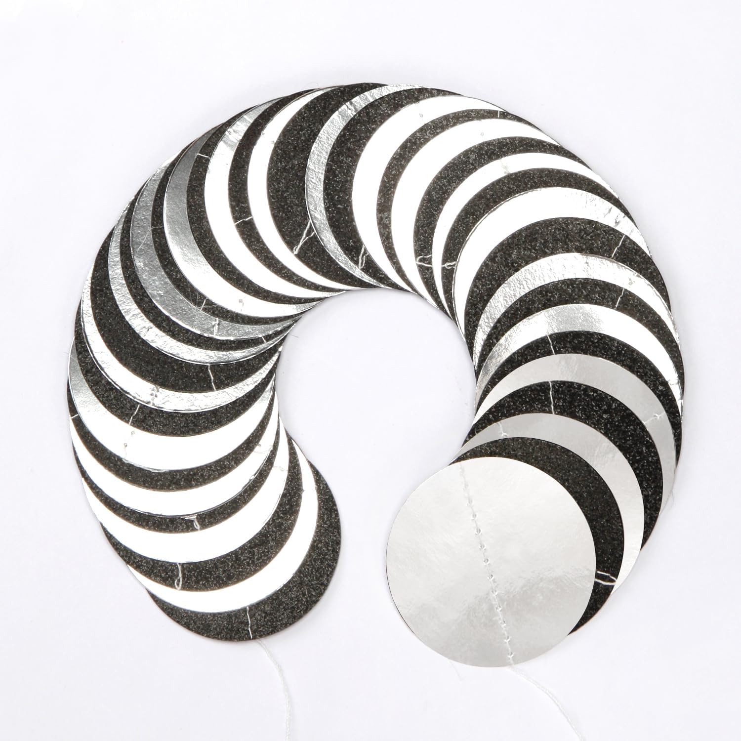 - PACKAGE CONTAINS: This set has four glitter black silver circle paper garland,the length of each strand is 4 meters/13 feet, the total length is 16 meters/52 feet.The size is 2IN.