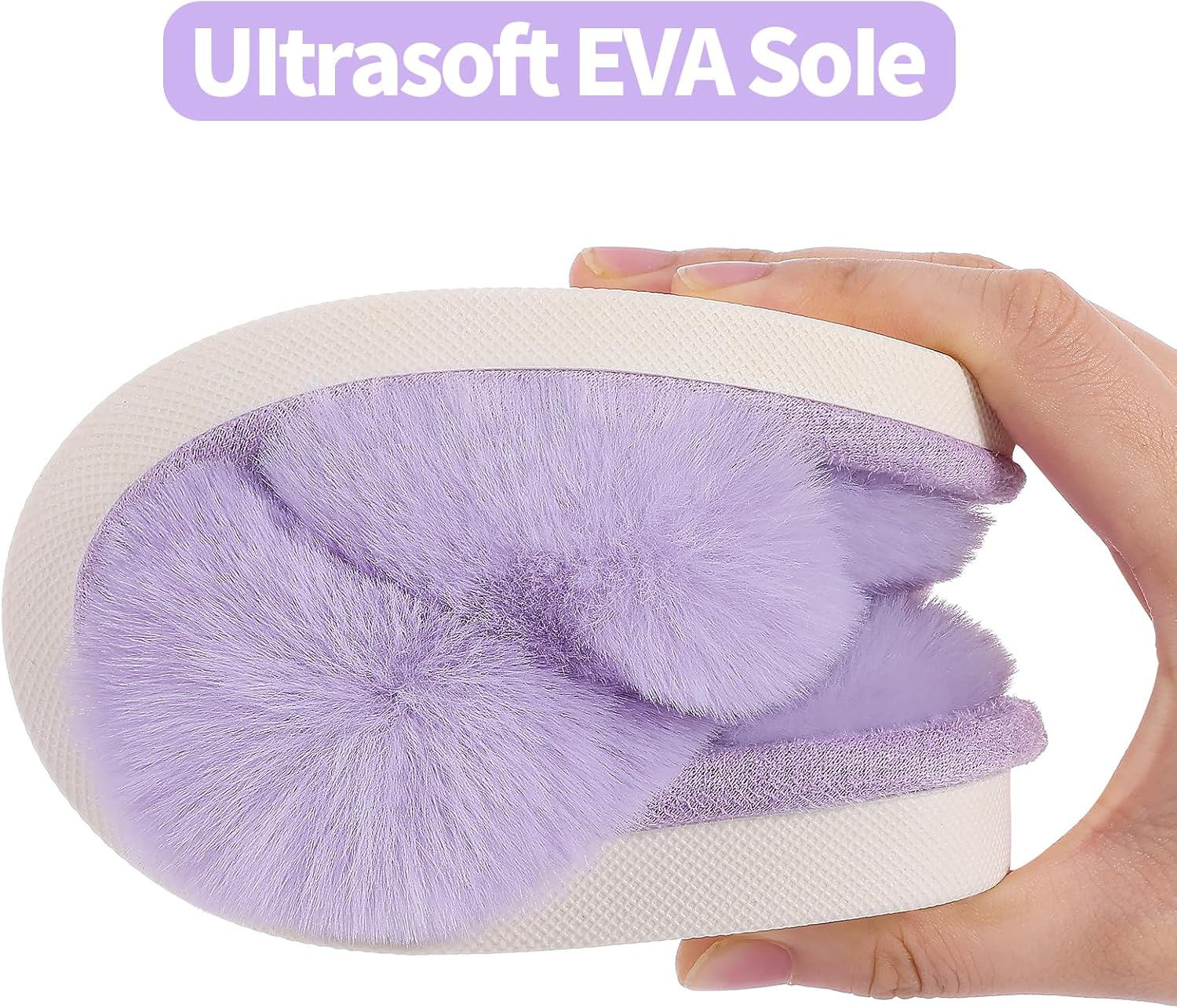 Evshine Women's Fuzzy Slippers Cross Band Memory Foam House Slippers Open Toe