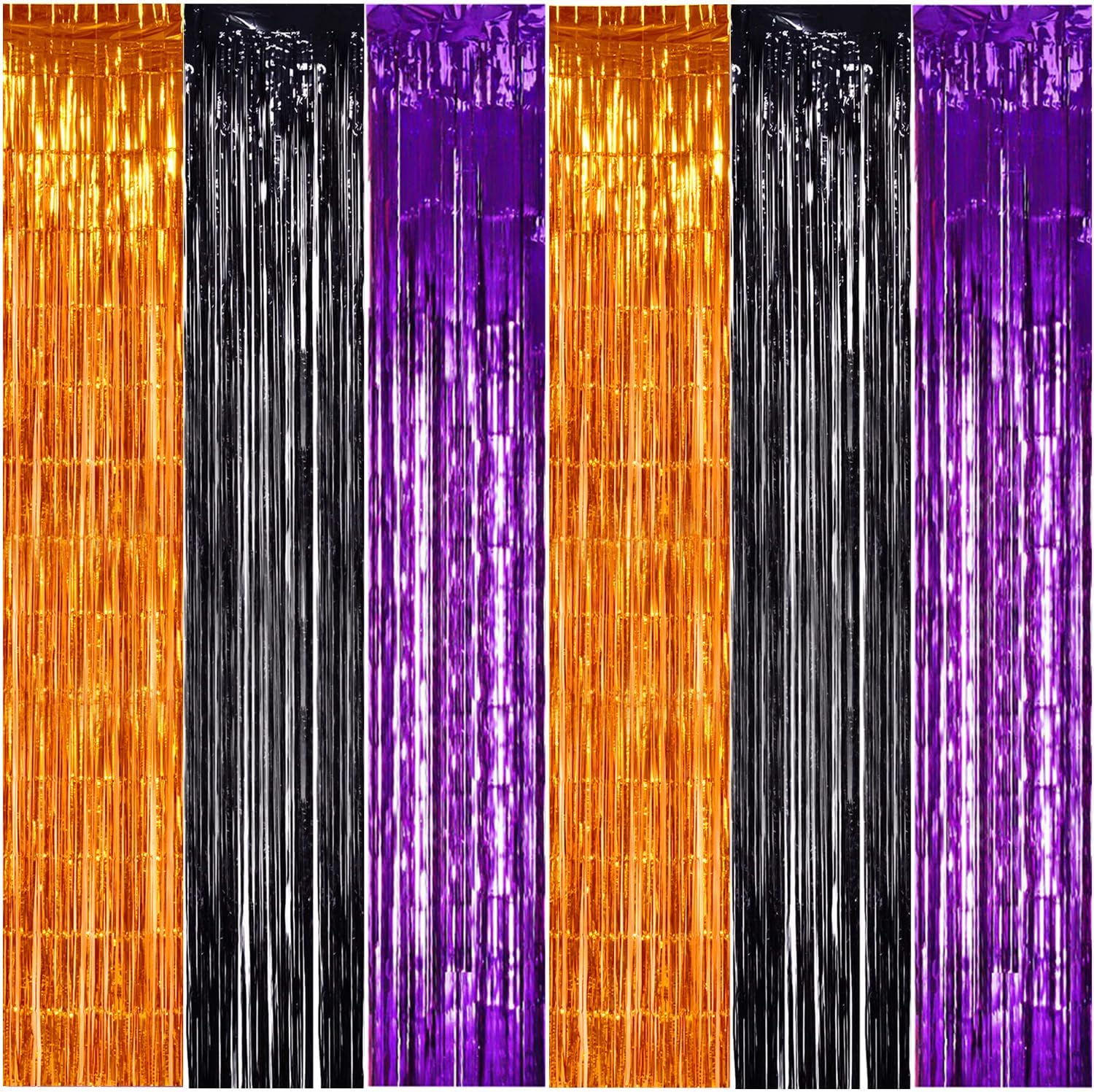 TONIFUL 2Pcs Orange Purple Black Metallic Tinsel Foil Fringe Curtains,3.28ft x 6.56ft Halloween Photo Booth Backdrop Streamer,Photo Props,for Party Door Wall Curtains Wedding Birthday(9.9ft x 6.6ft)