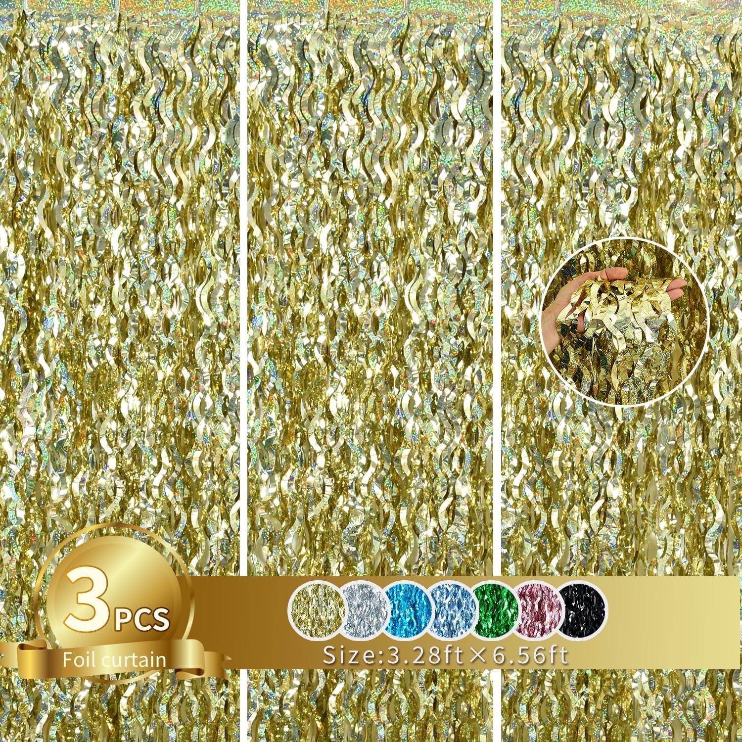 - PACKAGE CONTENTS: 3 x wavy foil curtains: Big size (wide x drop):1pcs 3.3 x 6.6 feet๏ผ9.9ft x 6.6ft in total.Brightly colored quality party decoration photography curtains will surely make your party more fun.