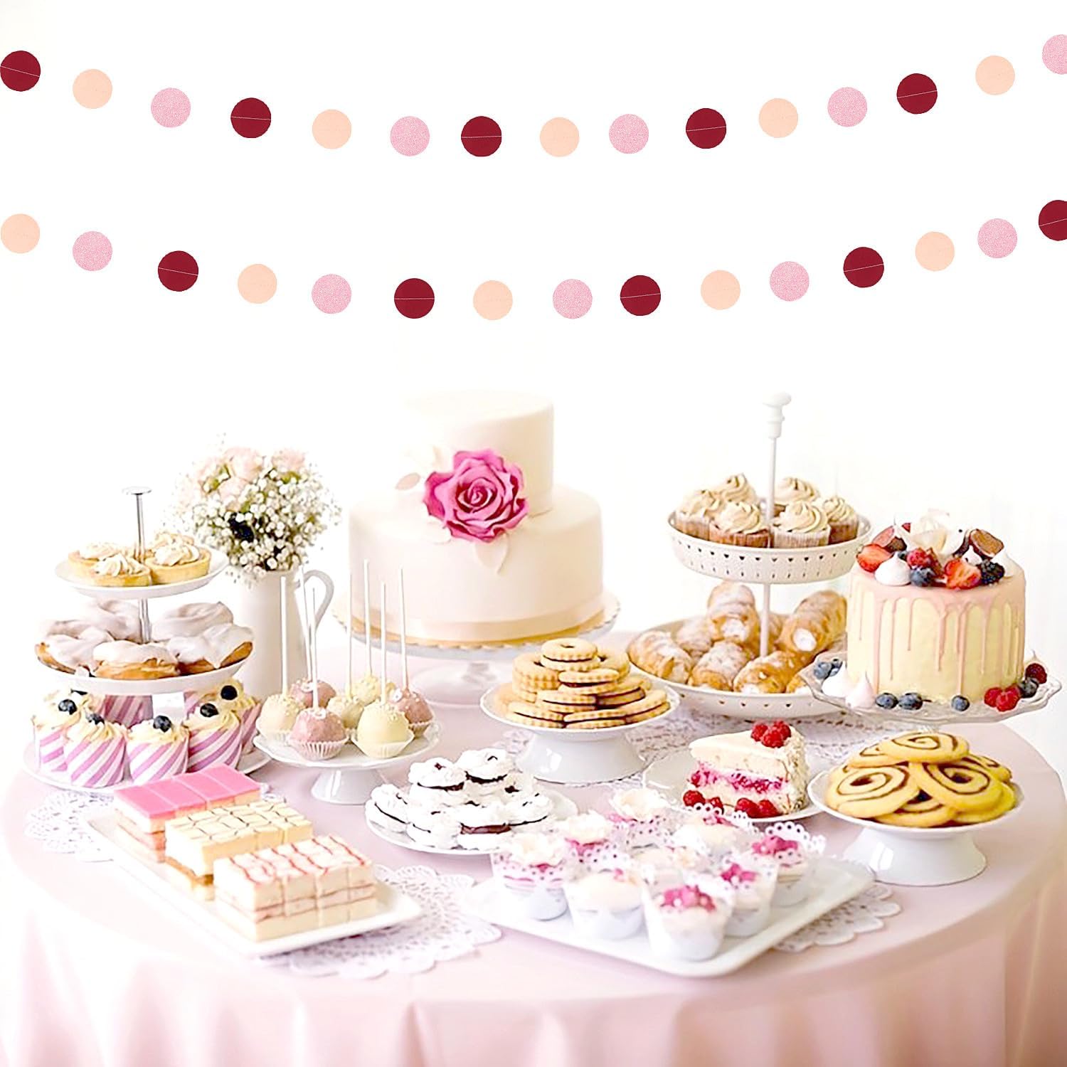 - 【Burgundy Pink Decorations Kit Includes】The party garlands includes 4pcs paper garlands, each backdrop bunting is 13 feet/ 4 meters long, total length is 52 feet/16 meters.