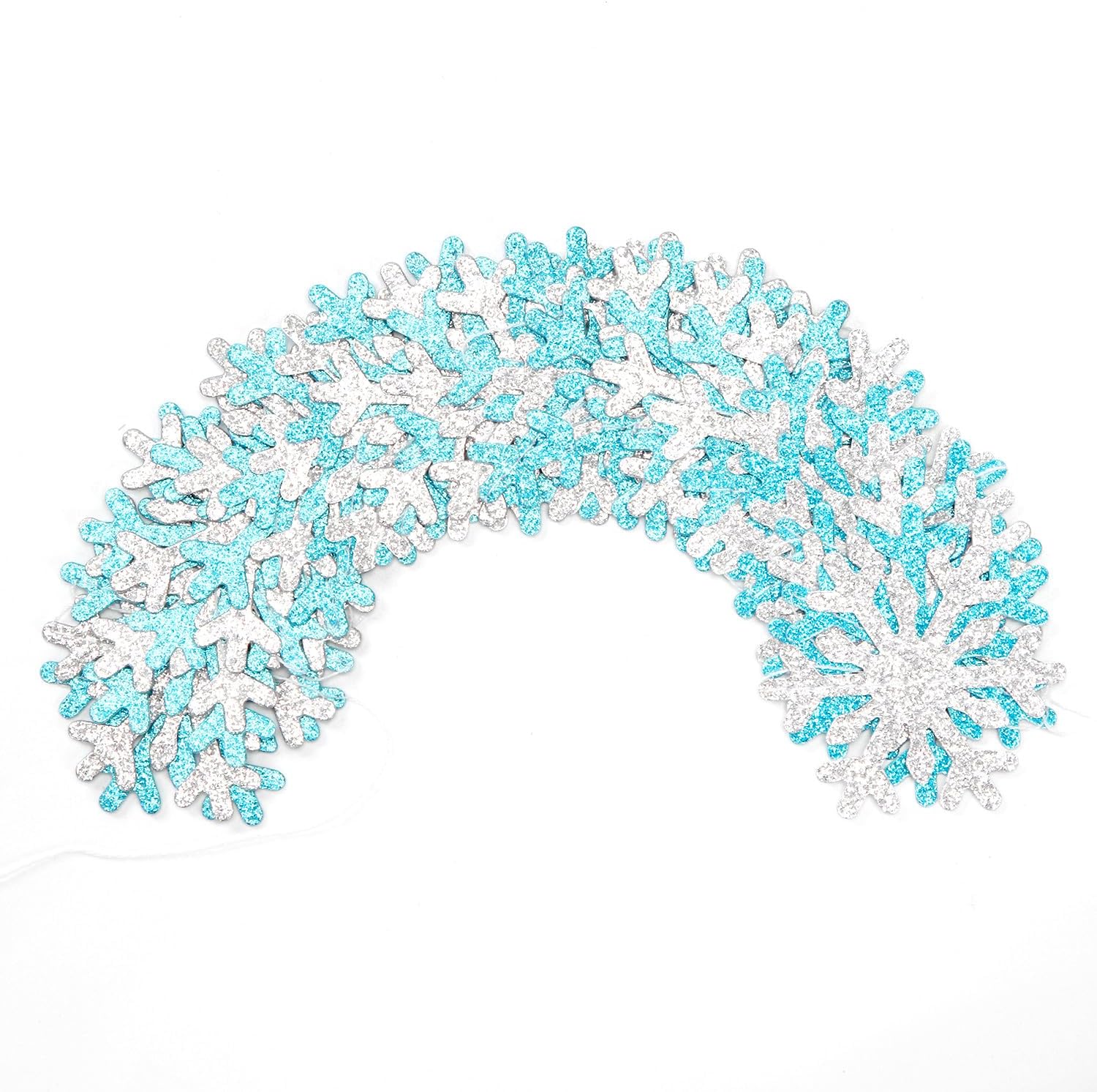 - 【Wide Use】These streamers garland are great for indoor and outdoor events such as christmas ornaments,frozen glitter birthday party ,winter wonderland decorations,snowflake decorations,baby shower ceiling decorations.