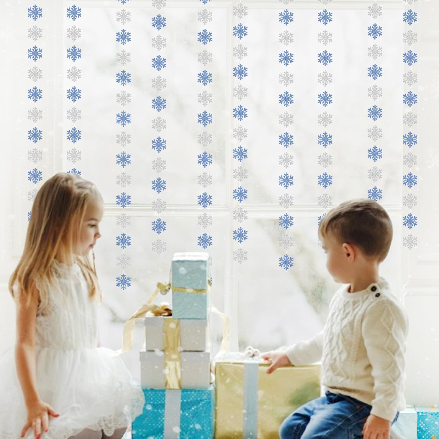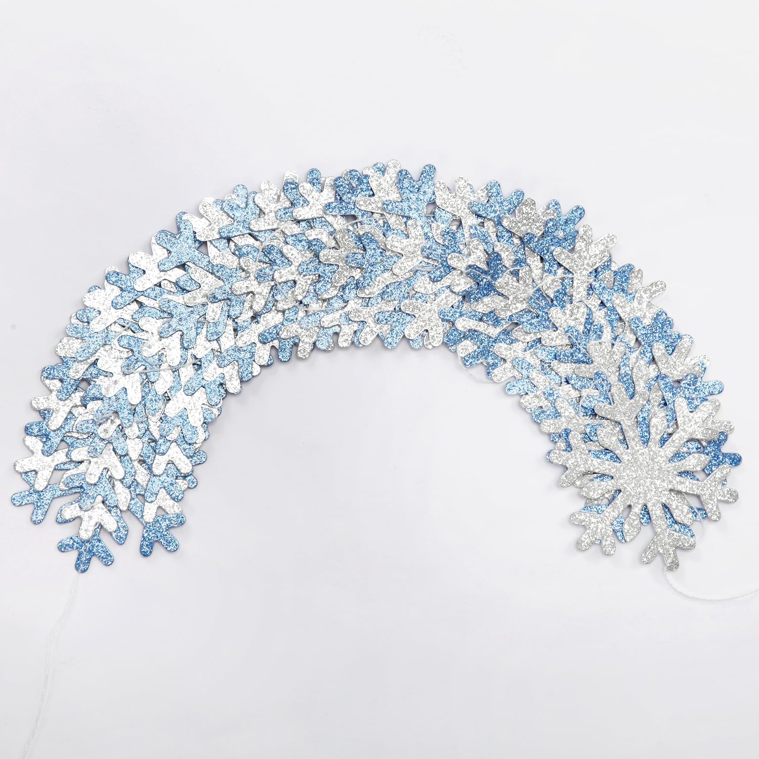 - 【Wide Use】These streamers garland are great for indoor and outdoor events such as christmas ornaments,frozen glitter birthday party ,winter wonderland decorations,snowflake decorations,baby shower ceiling decorations.
