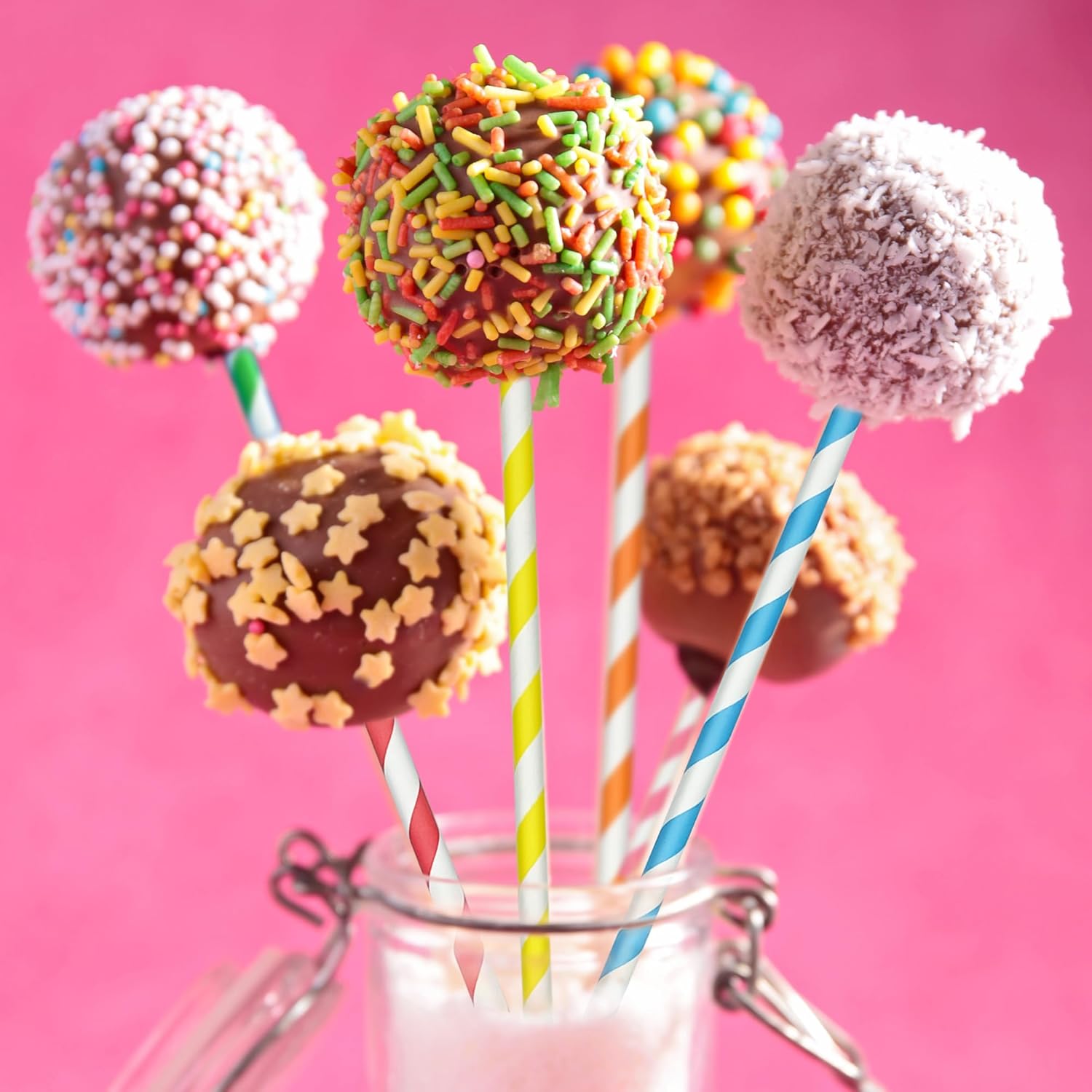 200 Striped Paper Straws, Biodegradable Disposable Drinking Colorful Straws for Birthdays, Coffee, Cocktail, Lemonade, Weddings, Bridal, Baby Shower, DIY Decorations, Party Supplies