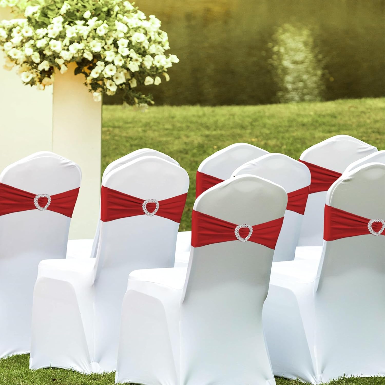 100PCS Spandex Stretch Red Chair Sashes Bows Universal Elastic Chair Cover Bands Ties with Buckle Slider for Wedding Party Birthday Reception Event Banquet Decoration(Red)