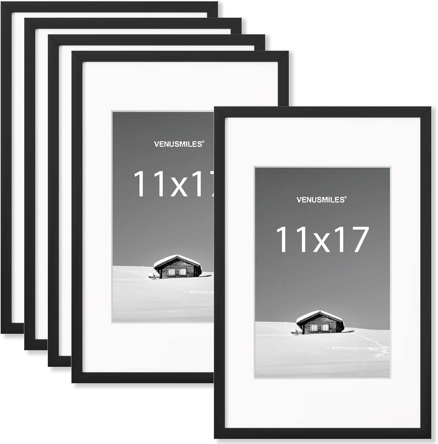 11x17 inch Picture Frame, 11x17 Photo Frames with Removable Mat - High Definition Plexiglass - Vertical and Horizontal Display - Wall Hanging Frame - Black, 5 Pack