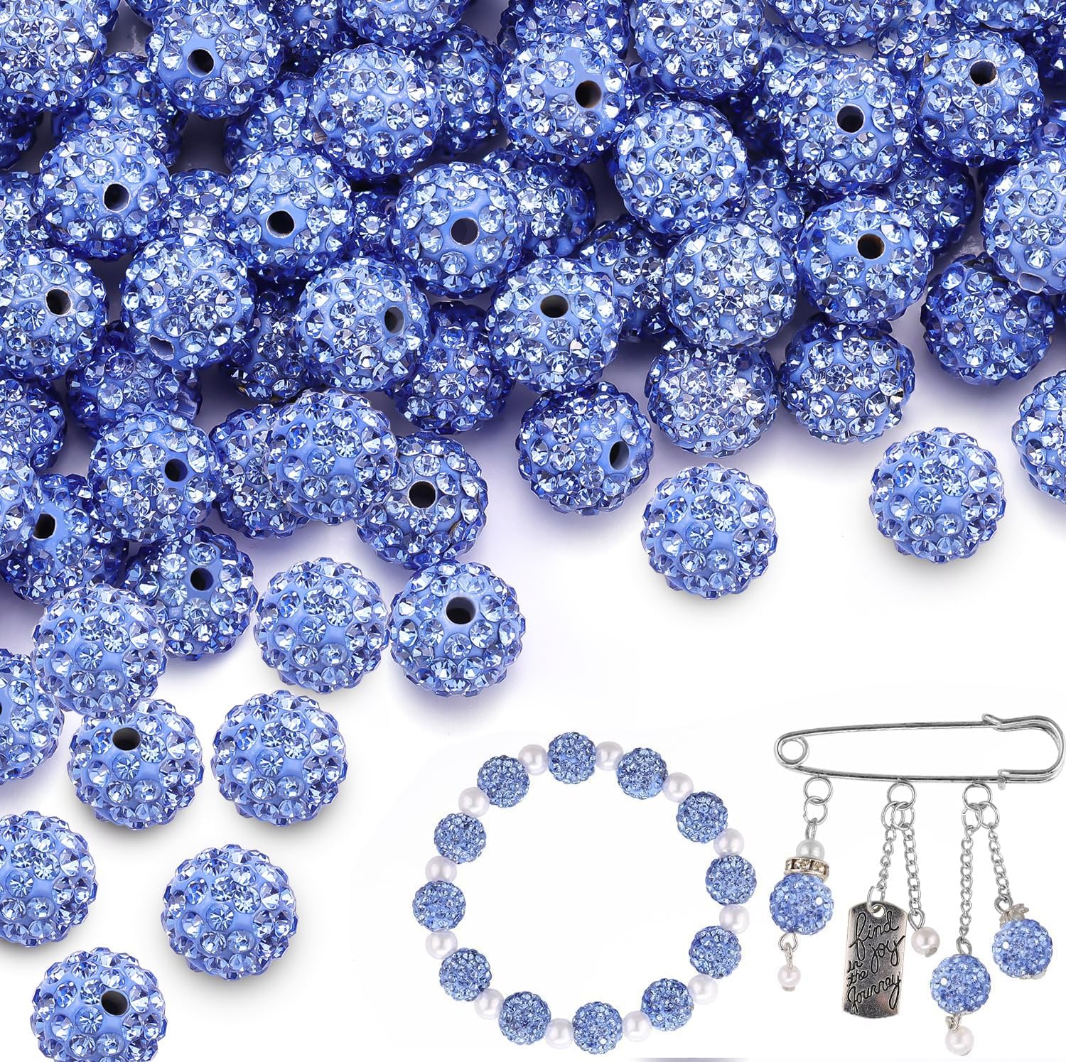 200pcs 10mm Light Sky Blue Rhinestone Beads for Jewelry Making, Shiny Round Shamballa Disco Ball Beads, Sparkle Crystal Clay Christmas for Bracelet Baseball Necklace Earring Crafting and DIY