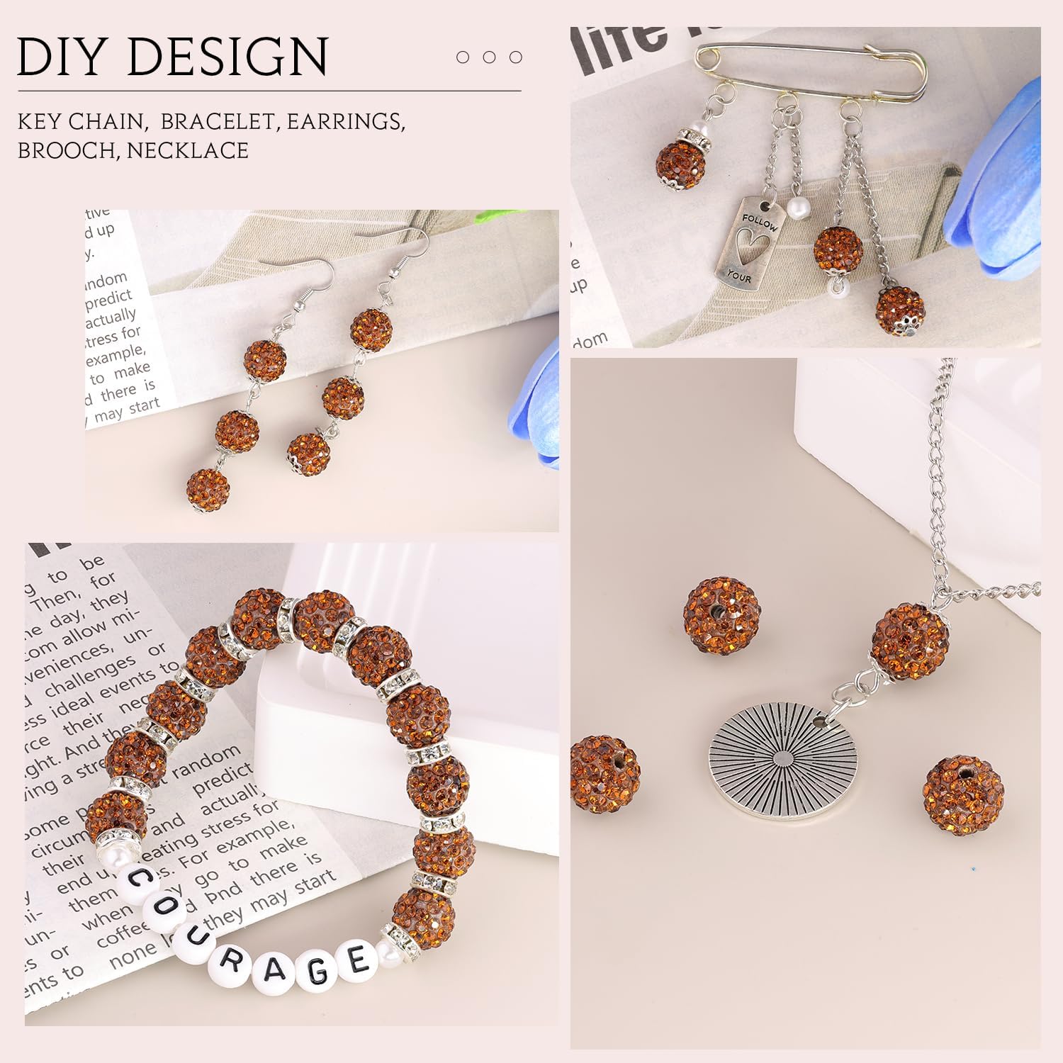 200pcs 10mm Brown Rhinestone Beads for Jewelry Making, Shiny Round Shamballa Disco Ball Beads Bulk, Sparkle Crystal Clay Christmas for Bracelet Baseball Necklace Earring Crafting and DIY