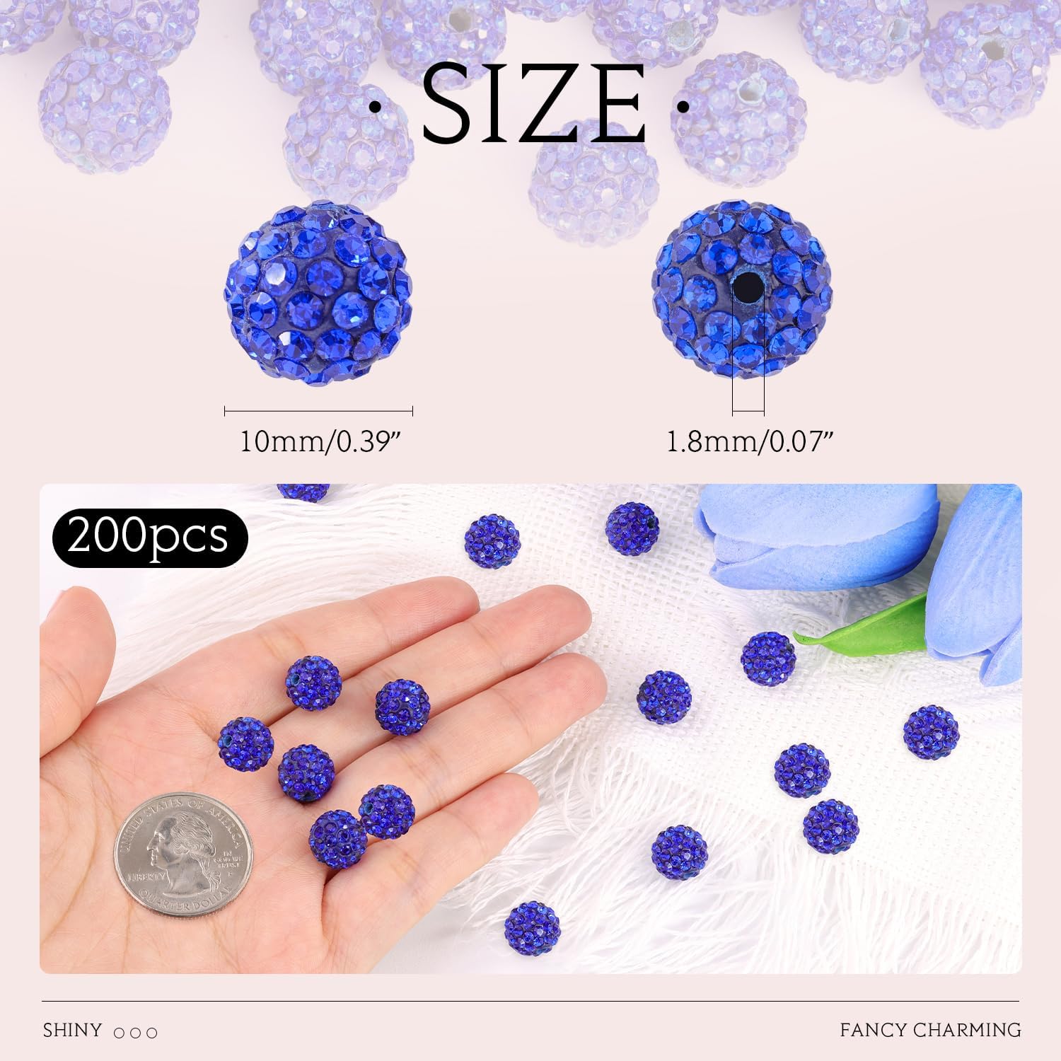 200pcs 10mm Dark Blue Rhinestone Beads for Jewelry Making, Shiny Round Shamballa Disco Ball Beads Bulk, Sparkle Crystal Clay Christmas for Bracelet Baseball Necklace Earring Crafting and DIY