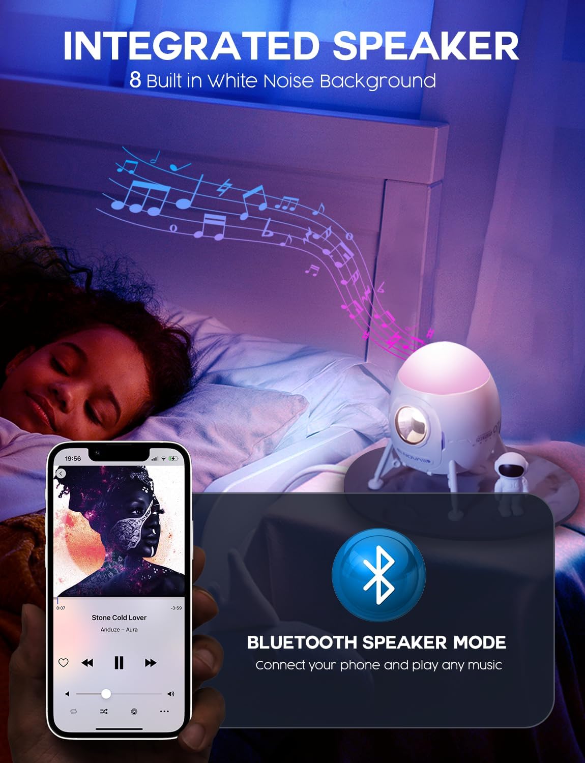 - Space Projector for Bedroom: The astronaut projector is designed for convenience and versatility. Powered by USB, it can easily connect to various power sources, such as a power bank, desktop computer. One of the key features of this lamp is its remote control functionality. With just a few clicks, you can adjust the projection patterns, set a timer for automatic shut-off, choose your favorite song to play, and change the light color to create the perfect ambiance for any occasion.