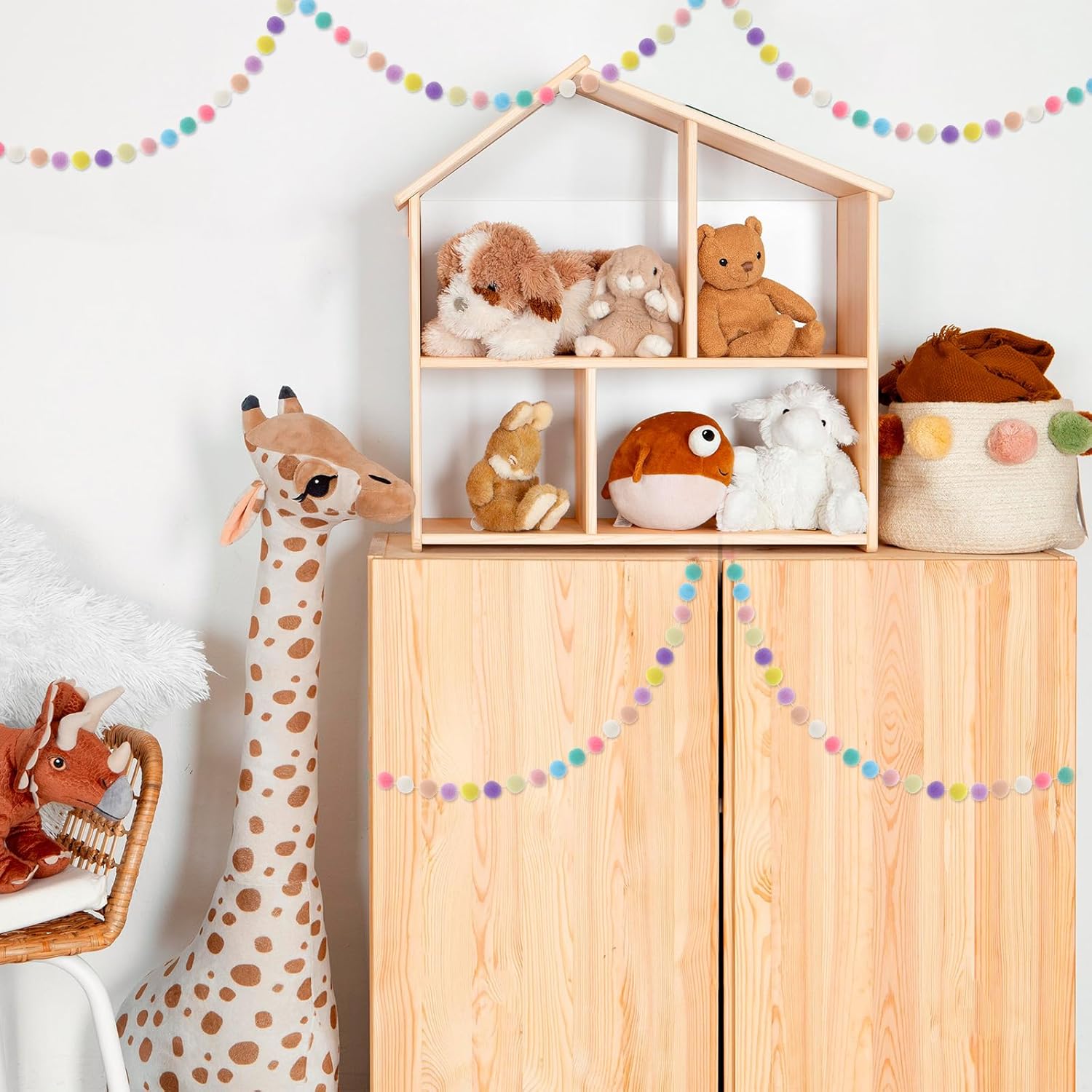 2 Pcs Pom Pom Garland 9.8 Feet 30 Balls Felt Ball Garland Pastel Ball Banner Cute Pompom Decorative Garland Rainbow Colorful Ball Ornament Garland for Wall Christmas Tree Decoration(10 Macaron Colors)