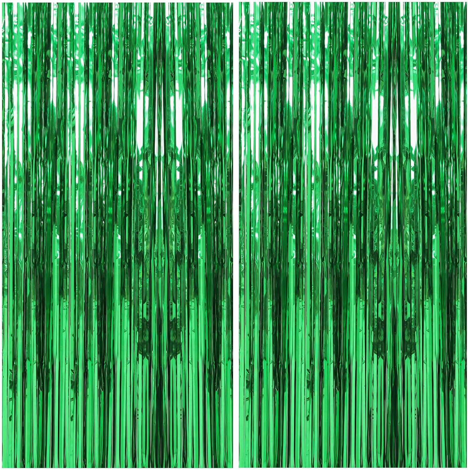 2 Pack Foil Curtain Backdrop Green Metallic Tinsel Foil Fringe Curtains Photo Booth Props for Birthday Wedding Engagement Baby Shower Bachelorette Christmas Holiday Celebration Party Decorations