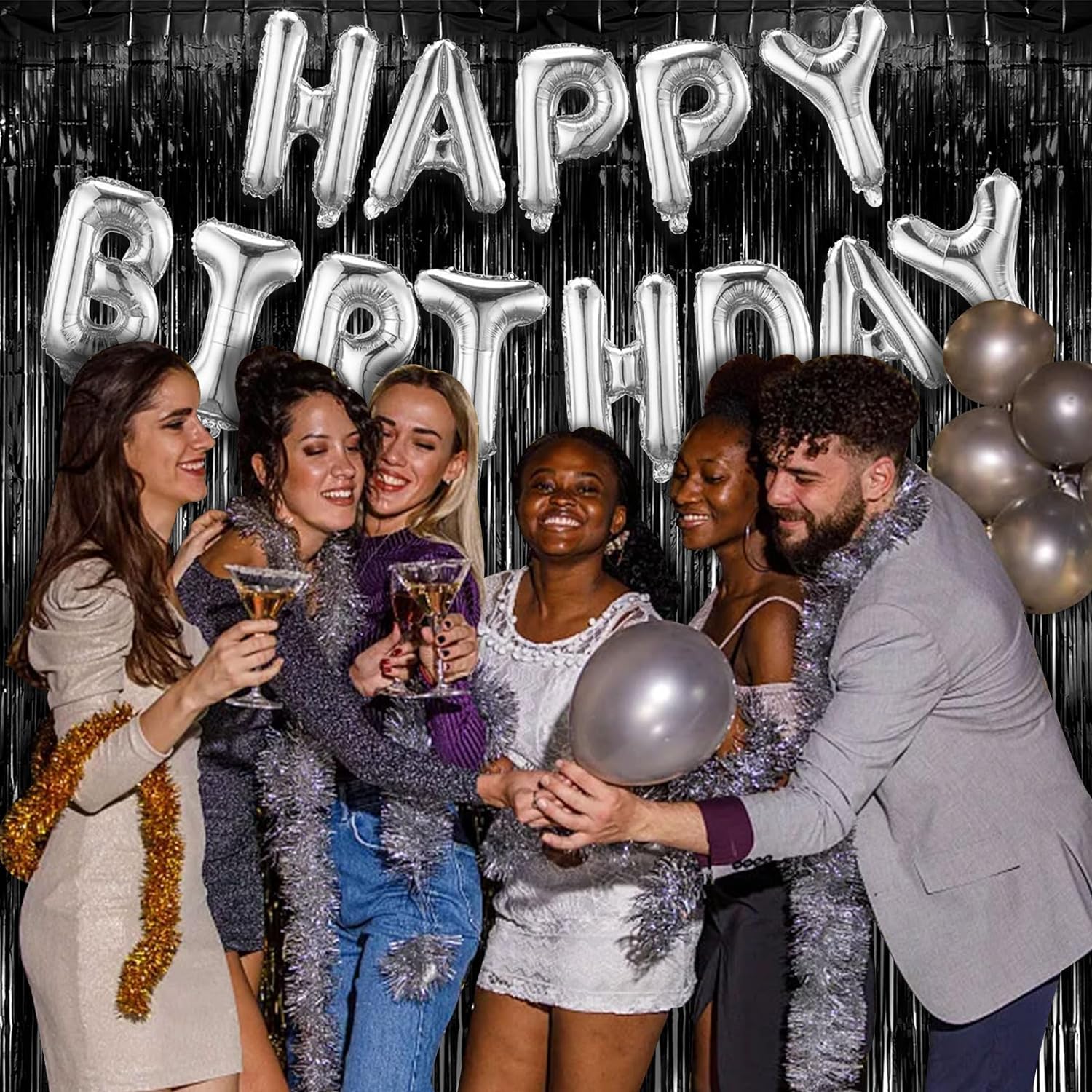 2 Pack Foil Curtain Backdrop Black Metallic Tinsel Foil Fringe Curtains Photo Booth Props for Birthday Wedding Engagement Baby Shower Bachelorette Christmas Holiday Celebration Party Decorations