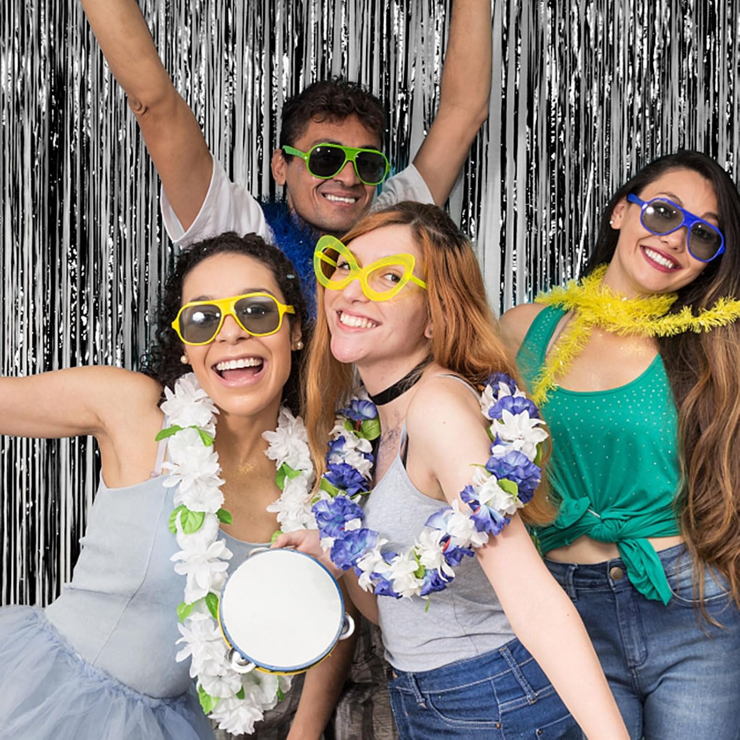 5 Pack Foil Curtain Backdrop Black Metallic Tinsel Foil Fringe Curtains Photo Booth Props for Birthday Wedding Engagement Baby Shower Bachelorette Christmas Holiday Celebration Party Decorations