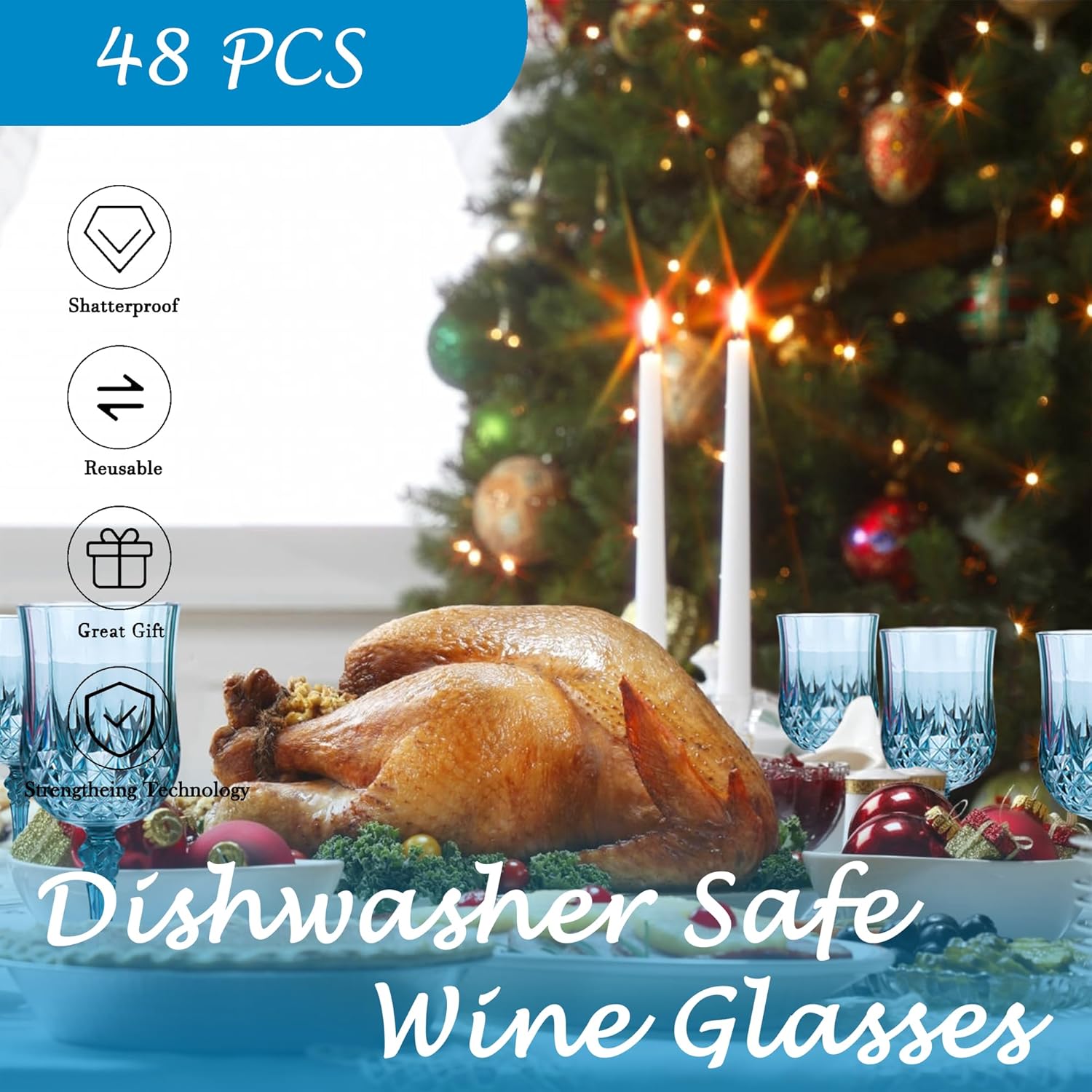 Plastic Wine Glasses,Plastic Goblets Vintage Style Cordial Drinking Glasses for Wedding Reception, Grand Event Party Supplies (48, Dusty Blue)