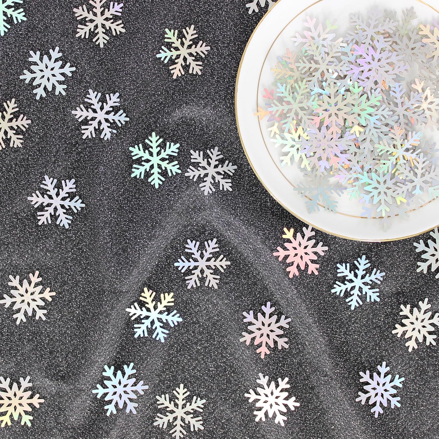 - Great addtion to your winter party:the shimmer tiny paper snowflakes confetti looks fantastic,appear to dreamlike atmosphere for the christmas new year holiday, baby shower,kids first birthday,bachelorette party,or wedding party decorations.