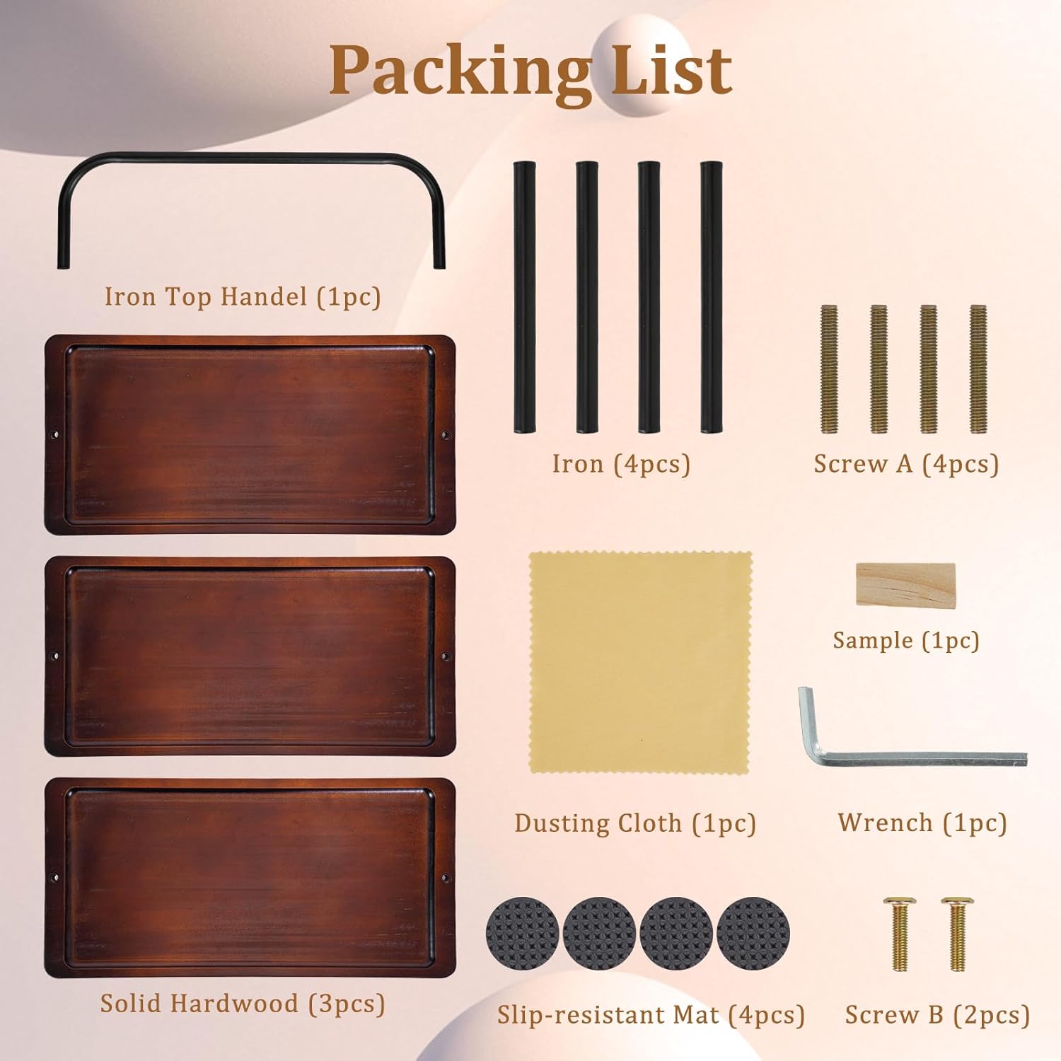 - 【Stability Assurance】:The combination of 0.5-inch-thick solid hardwood slabs and monolithic die-cast iron, along with slip-resistant mats, ensures stability even when the 3-tier serving tray is fully loaded