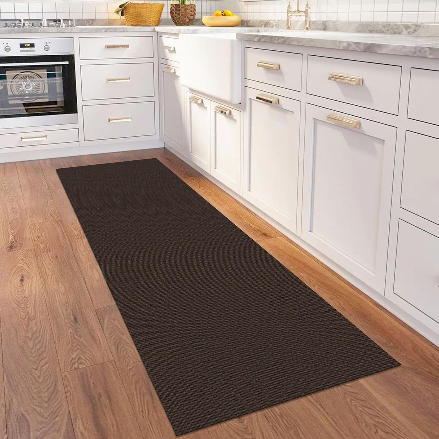 KOZYFLY Washable Runner Rug 2x6 Ft Runners for Hallways Non Slip Kitchen Runners Braided Cotton Entryway Runner Indoor, Carpet for Hallway Kitchen Entryway Bedroom, Dark Coffee/Brown