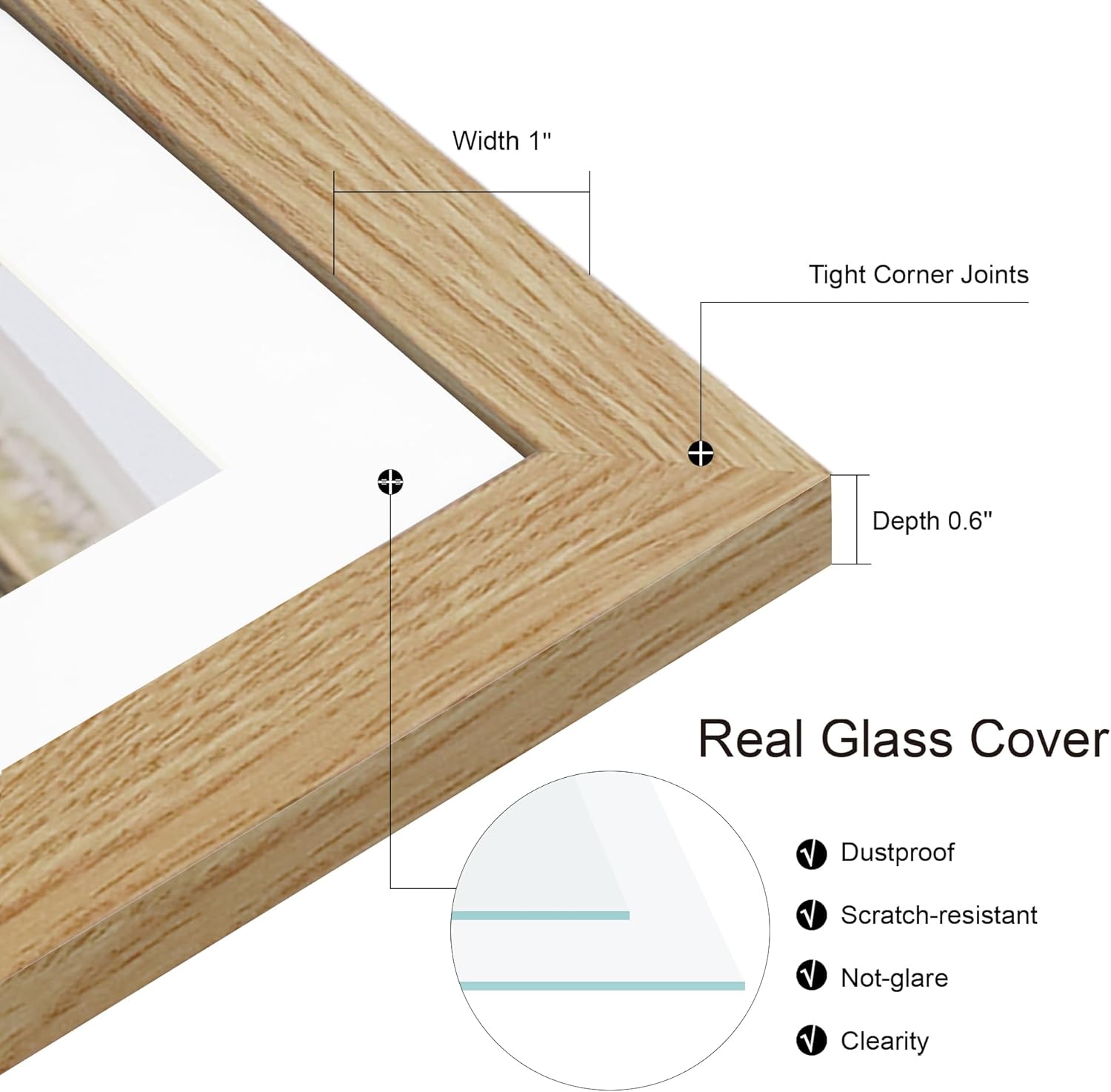 - Rustic Wood and Glass - The 8.5x11 collage picture frames made of durable MDF wood compared to other flimsy PS or plastics frames. we use tempered glass is an exceptional alternative to plexiglass, eliminating the inconveniences of bending, reflection, fragility, and susceptibility to scratches. Its edges are meticulously polished, ensuring your safety and shielding you from the harm caused by sharp glass edges.