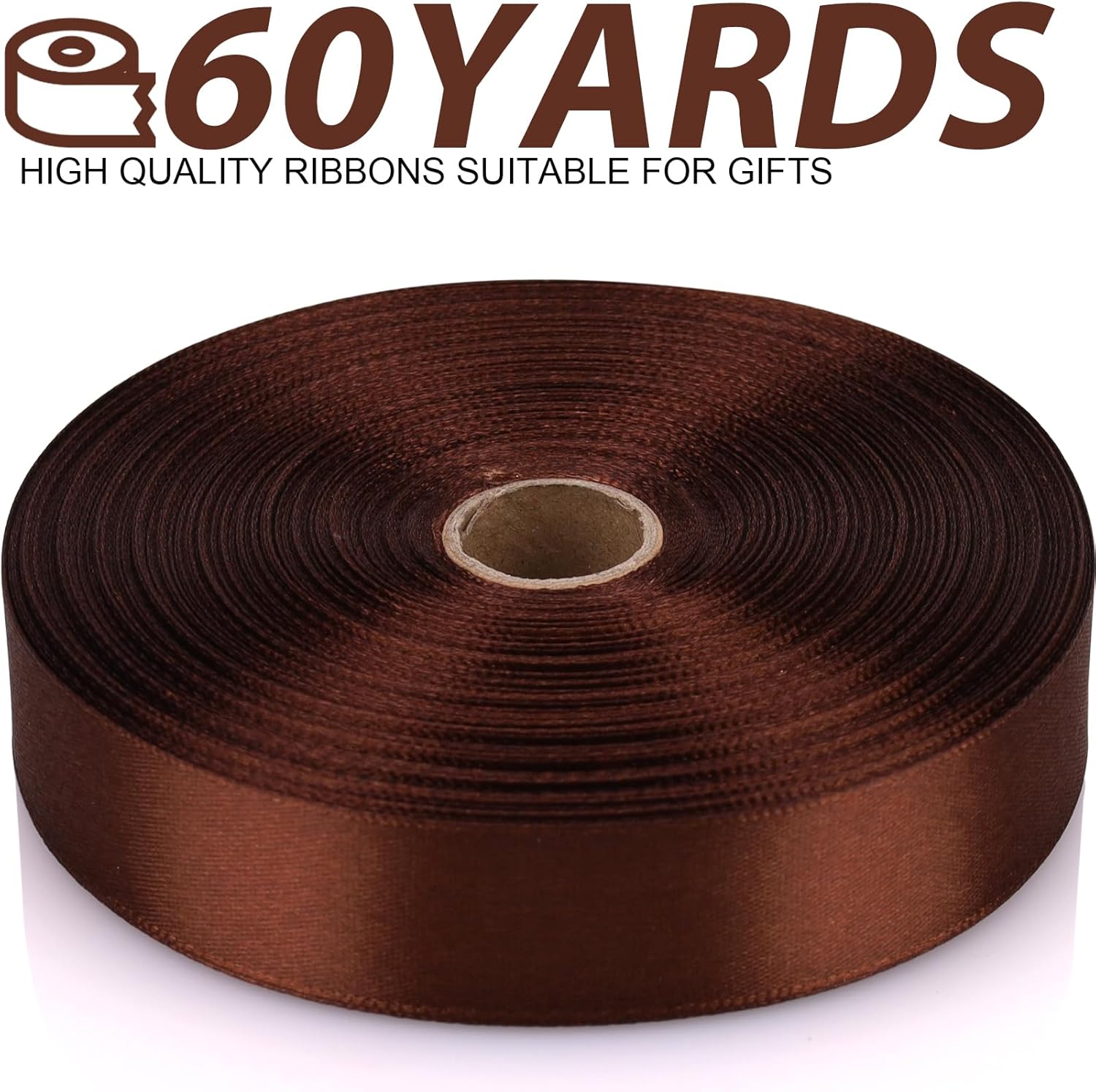 Brown Satin Polyester Ribbon - 7/8 Inch, 60 Yards - Classic, Multiple Occasions