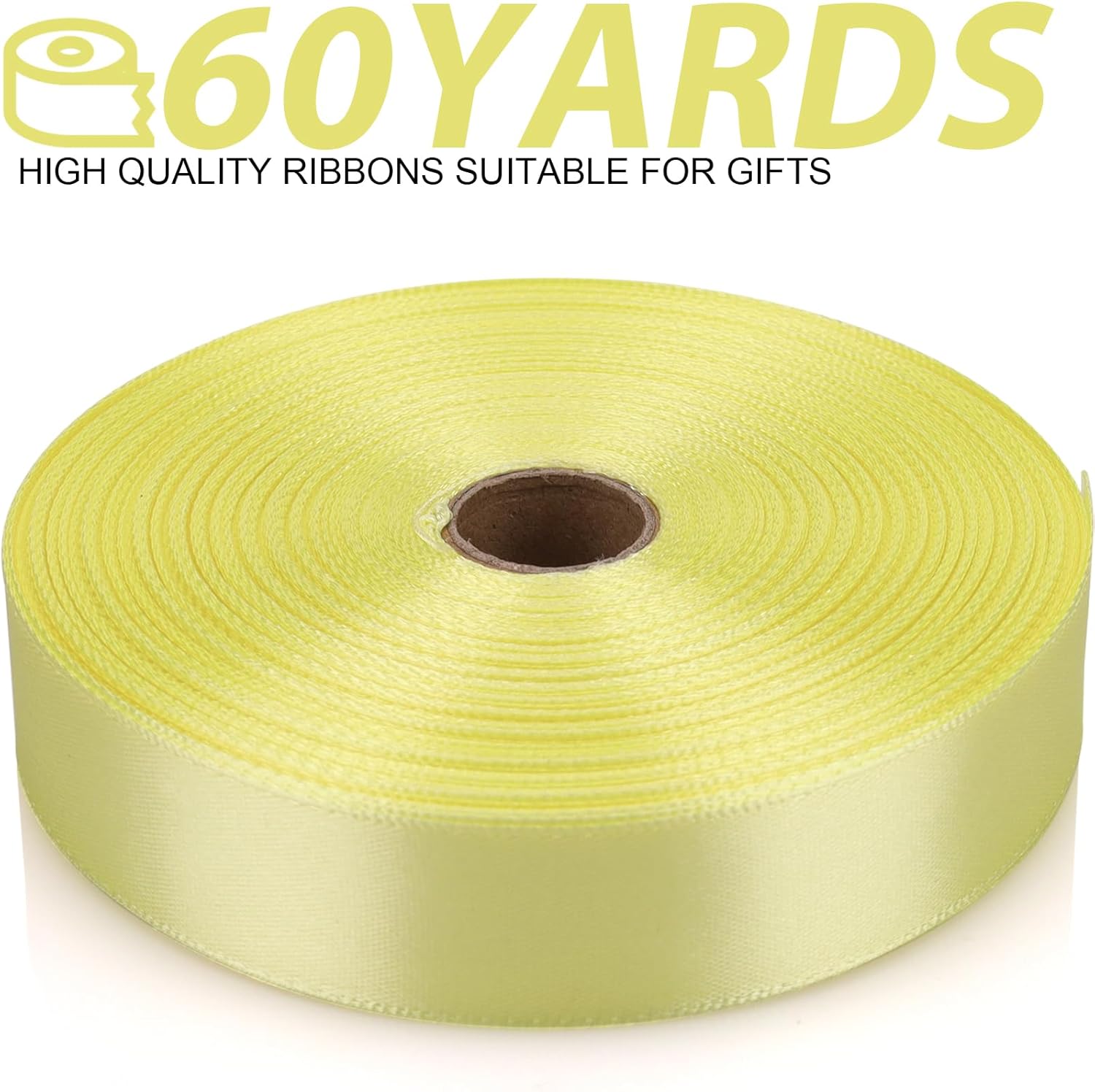 Rice Yellow Ribbon 7/8 Inch 60 Yards Satin Craft Ribbon-Single Face Polyester Ribbon for Handmade Roses,Gift Wrapping,Timeless Flower,Bouquets,Wedding and Party Decoration