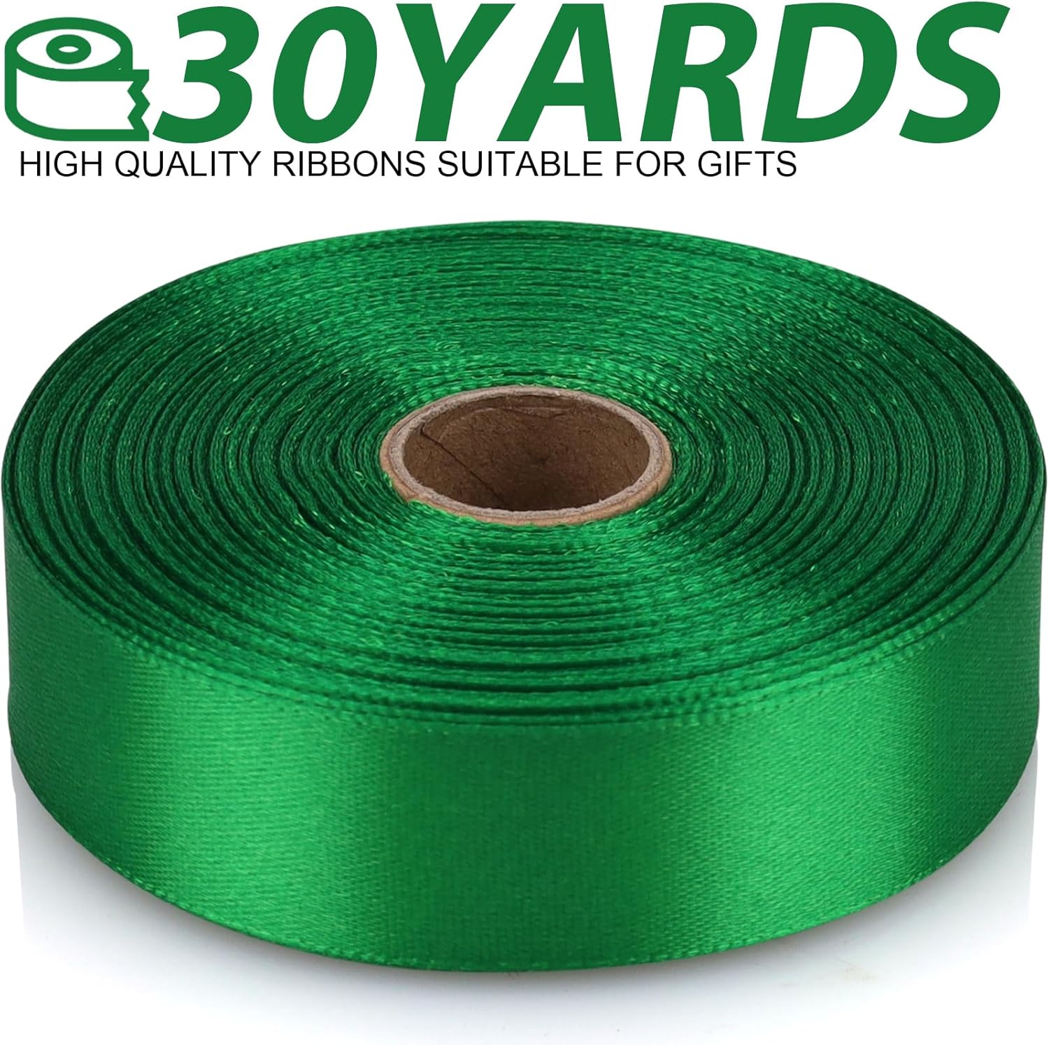 Green 7/8 Inch 60 Yards Satin Craft Ribbon - Single Face Polyester Ribbon for Handmade Roses, Gift Wrapping, Timeless Flower, Bouquets, Wedding and Party Decoration
