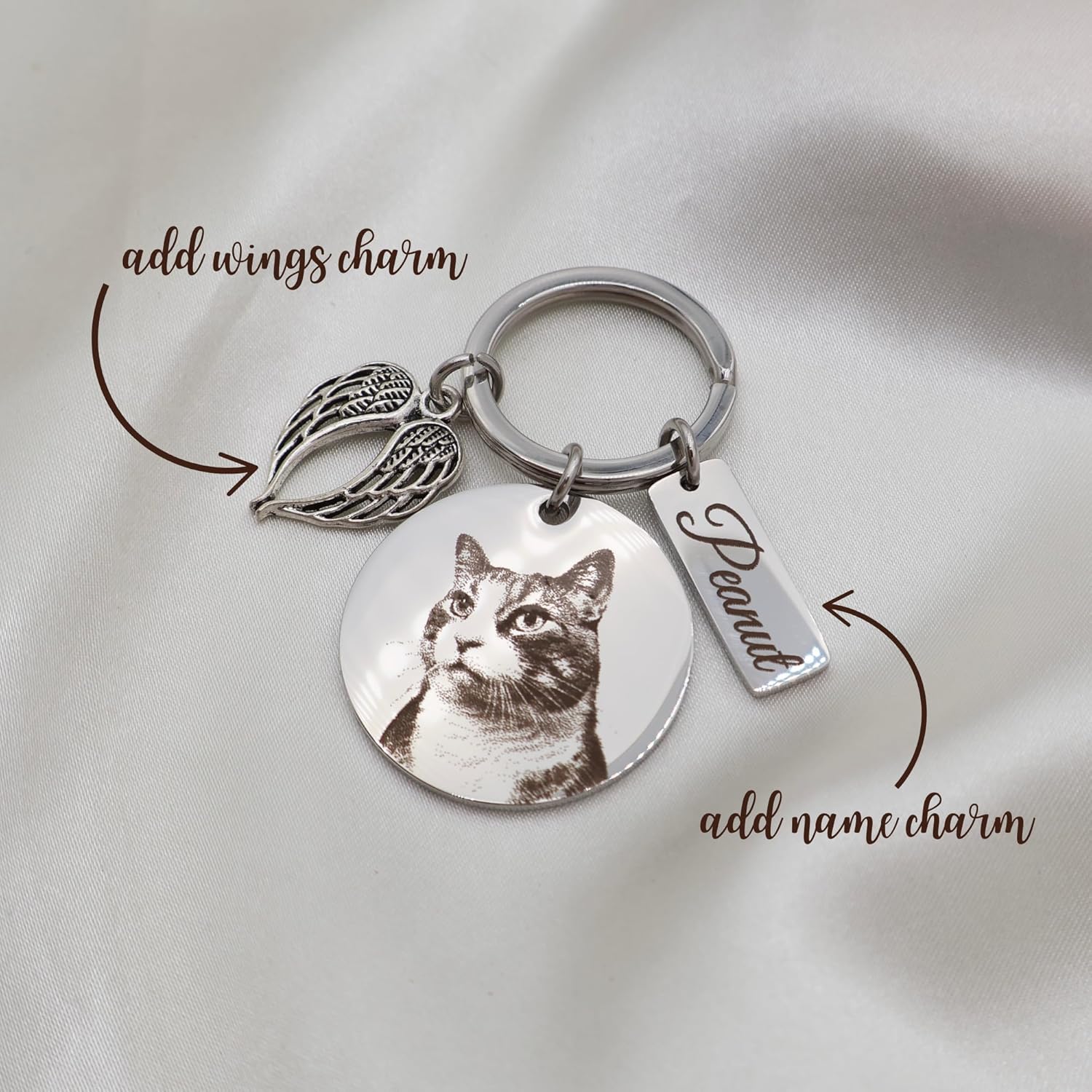 - Enhanced Personalization Options – Along with the pet photo engraving, customize further by adding text to the back, a small charm featuring your pet’s name, and a beautiful wings pendant for an extra sentimental touch.