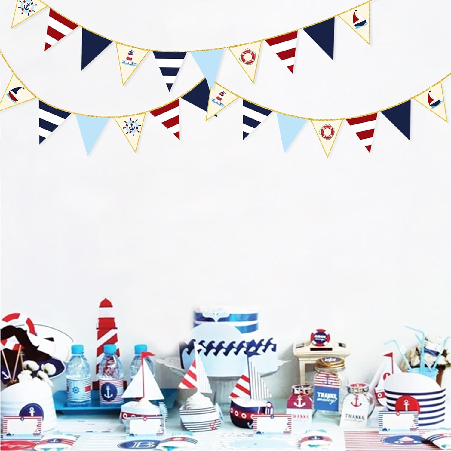 - ⛵Quality Material - Our navy blue red beige ahoy achor theme pennant flag banner are made of quality cardstock,safe and non-toxic,durable and reusable.