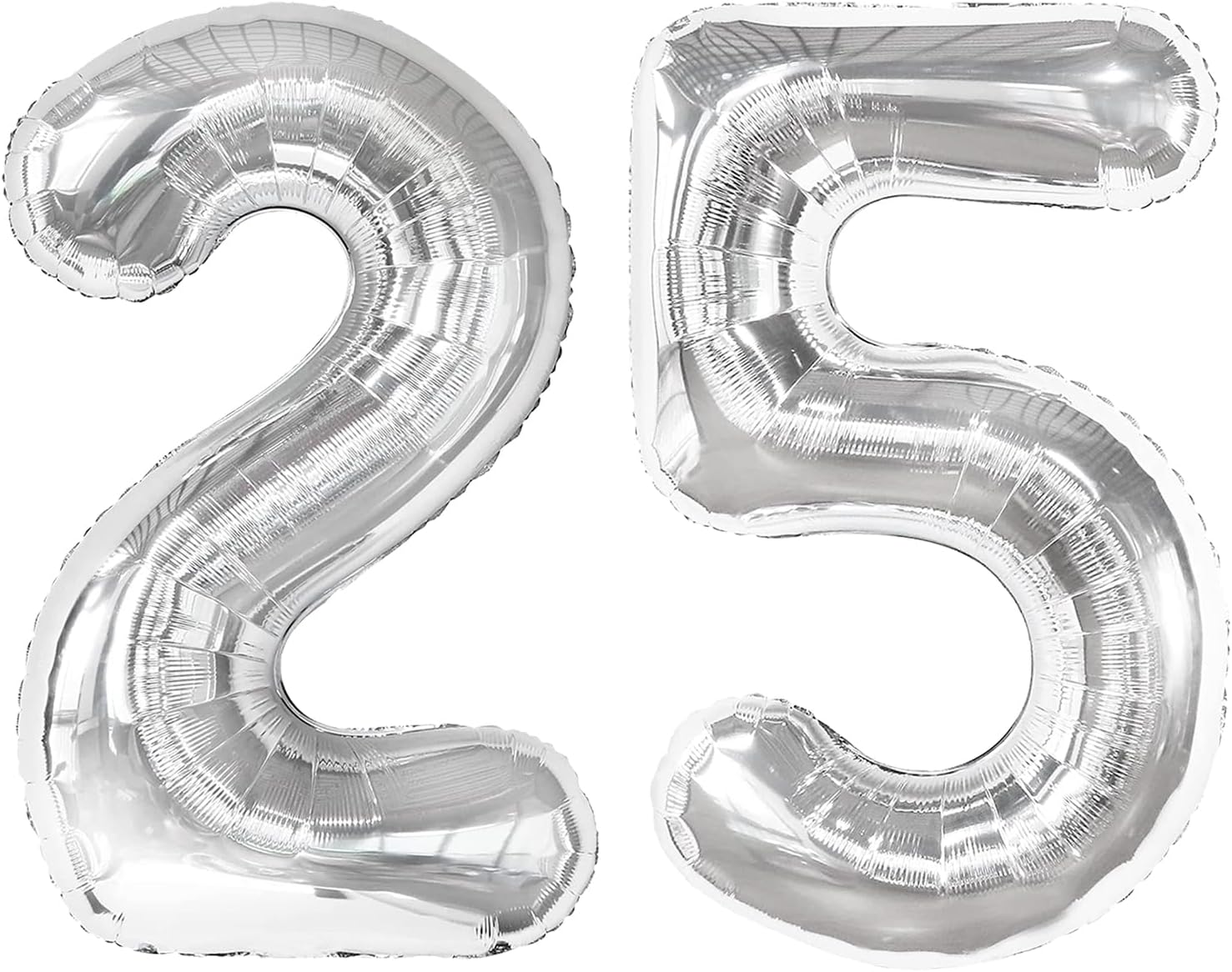 - 1.Elegant Understated Silver Number Balloons: You will receive an uninflated silver 40 inch number 25 balloon. Balloons are always the best statement of romance and surprise. Silver balloons symbolize vitality and exoticism, adding glamour to birthday parties. Bright metallic silver and huge size make silver balloon a highlight of special parties. Choose one or more numbers from 0-9 number balloon, and use 25 52 balloons number to create a lively and charming party!