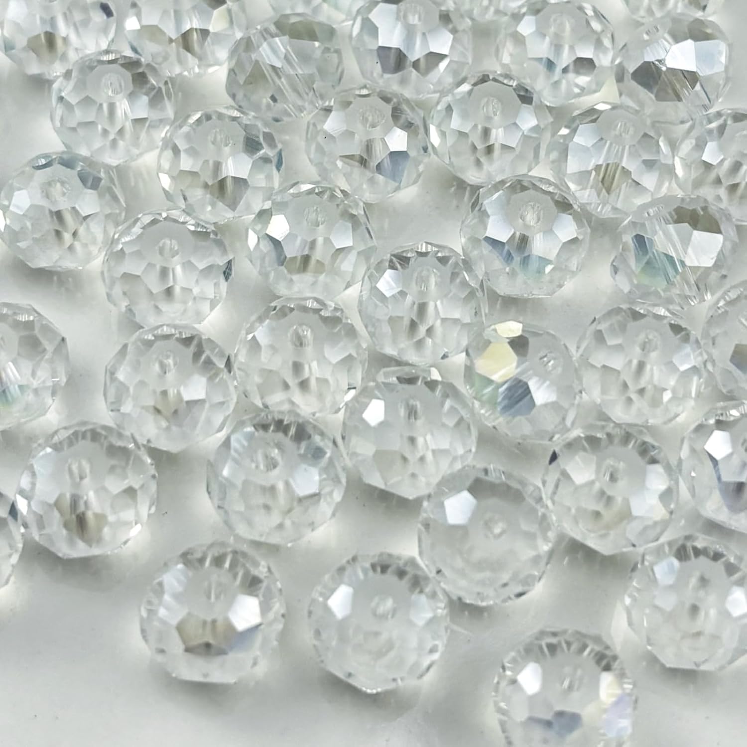 100pcs 8mm Crystal Glass Beads for Crafts Faceted Rondelle Glass Beads for Jewelry Making Crystal Spacer Beads for Necklaces Bracelets Earrings DIY Craft(Transparent AB)