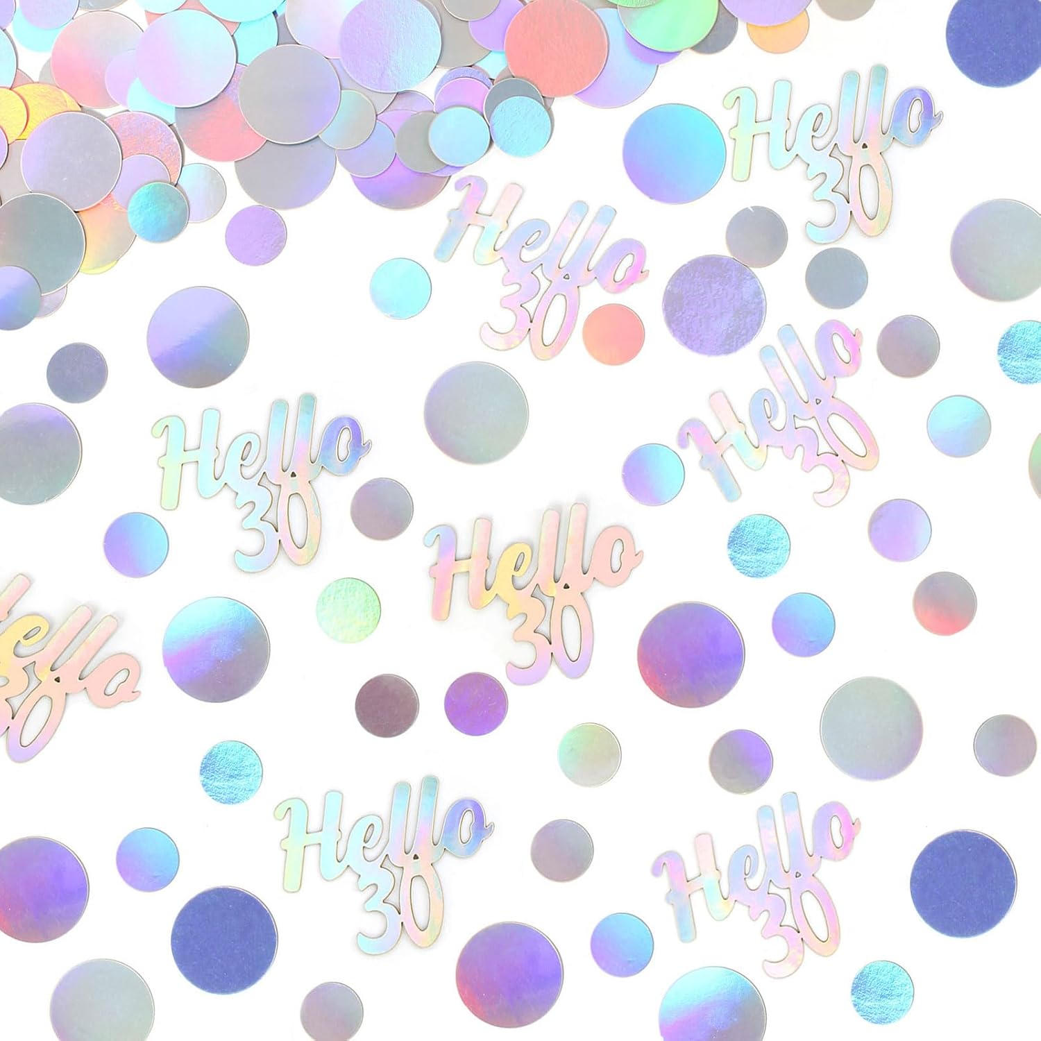 - Ideal for female 30th birthday table decorations.The shimmering silver hello 30 circle dot table confetti is shiny,perfect for winter wonderland birthday/wedding anniversary party decor,especially suitable for disco music/cowgirl themed birthday celebration
