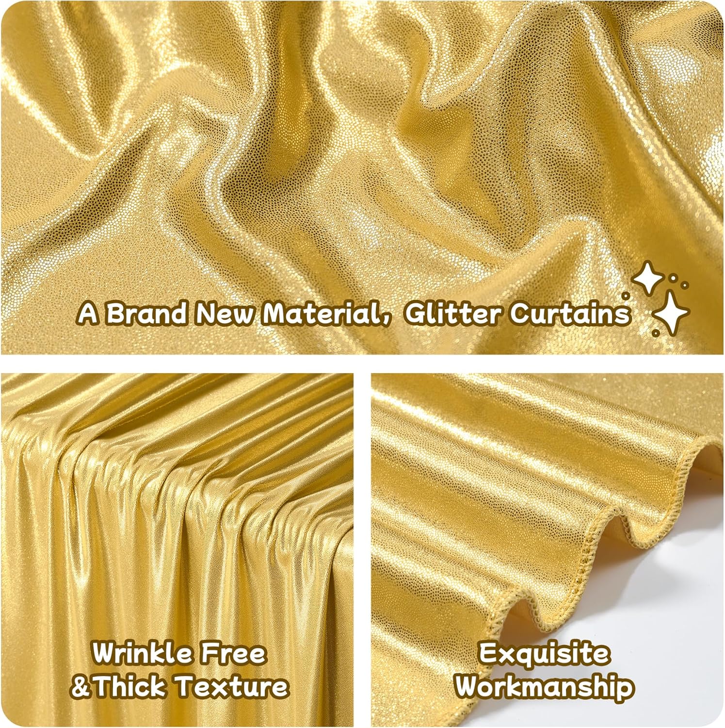 - Not See Through 10FT Sequin Glitter Drape Curtains:Your package will come with 4 panels gold sequin glitter photography backdrop drapes. Each gold background panels measures 5ft width and 10ft height.Entire backdrop curtain measures 20ft x 10ft.
