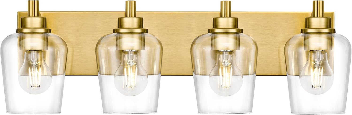 - Bulb Requirements: This gold bathroom lighting fixtures over mirror requires 4 E26 base bulbs, 60W Max. Fully dimmable when used with a dimmable bulb and dimmer switch (bulb and dimmer switch not included)