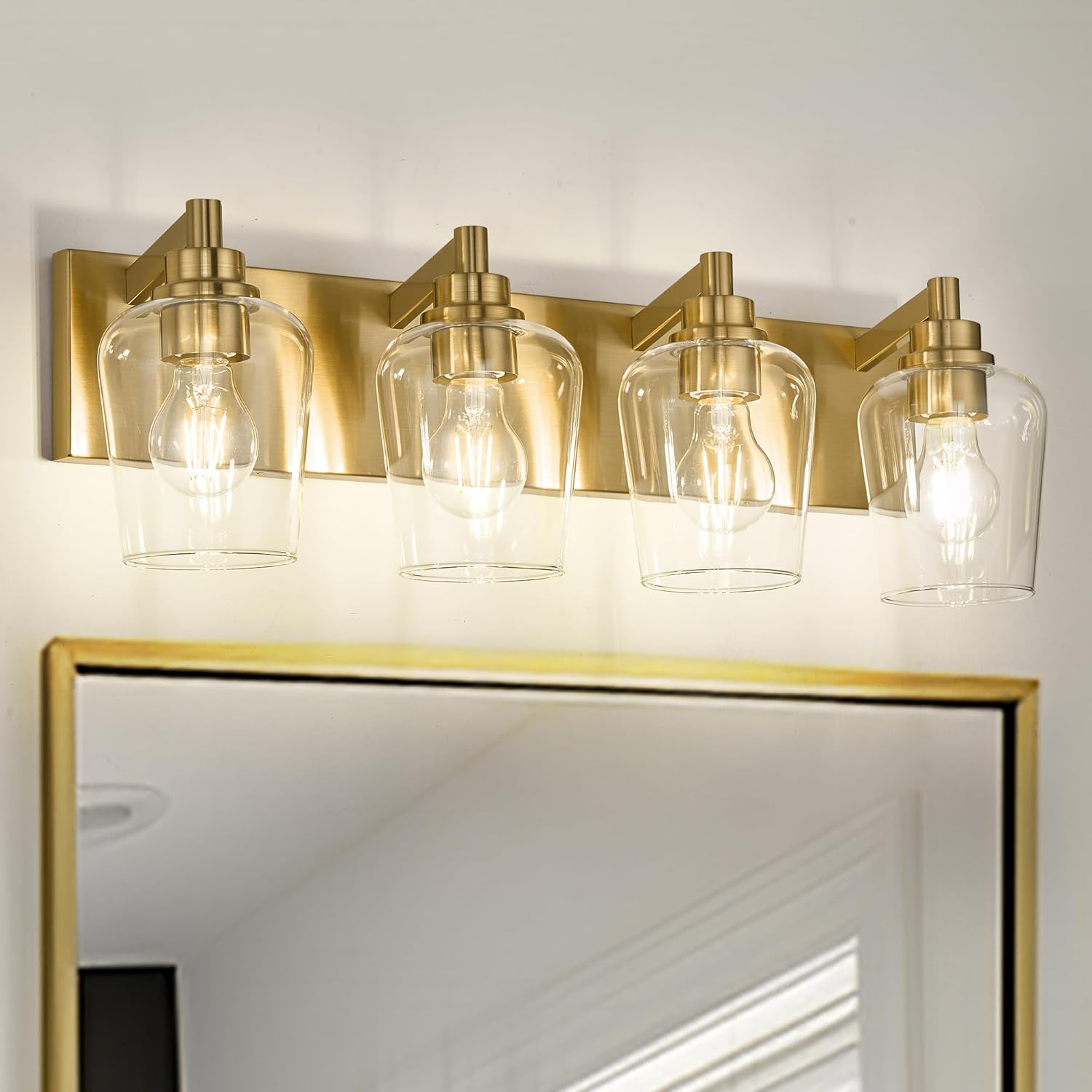 Bathroom Light Fixtures, 4-Light Modern Vanity Light with Clear Glass Wine Glass-Shaped Shade, Vanity Lighting Fixtures Over Mirror, Brushed Gold, VL155-BG-4