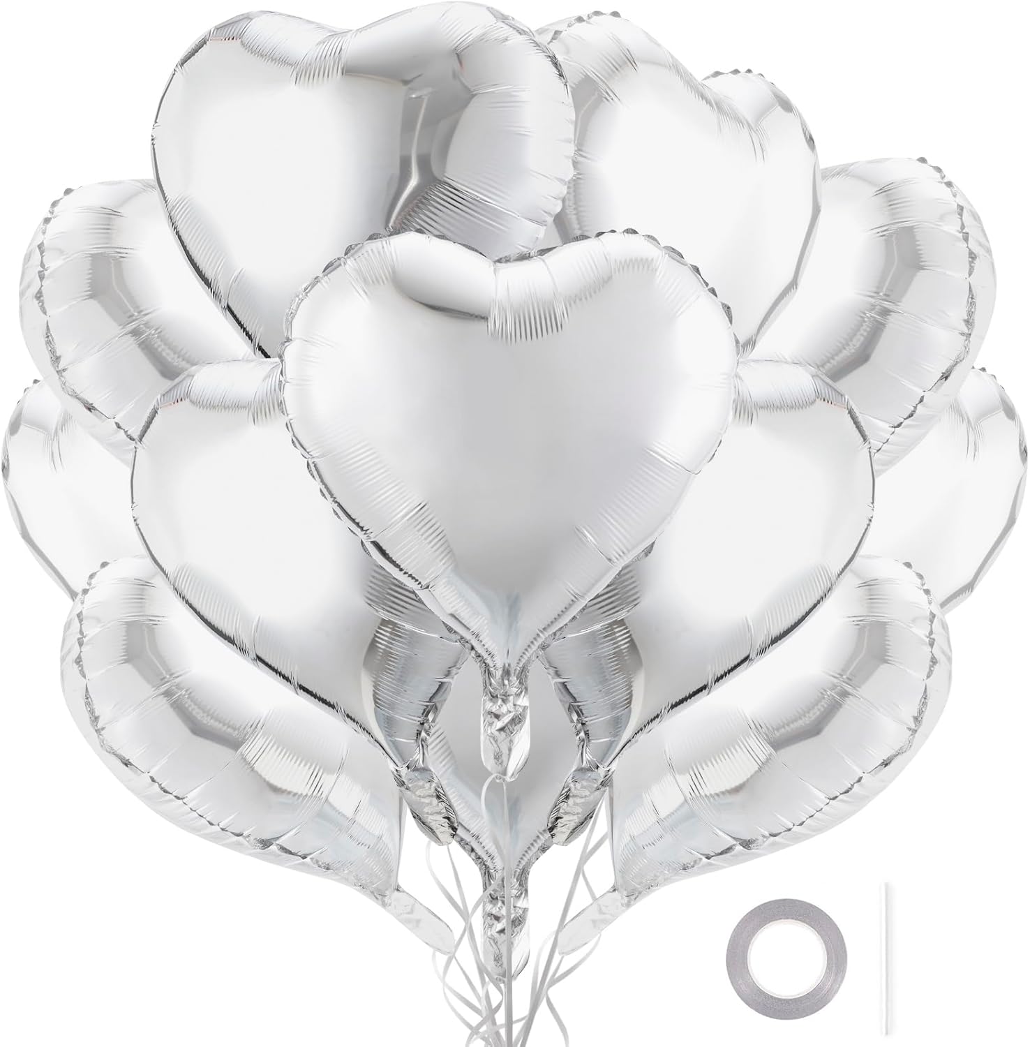 - PACKAGE INCLUDES-12Pcs 18 inch silver heart balloons,1 roll 33ft ribbon and 1pcs straw.