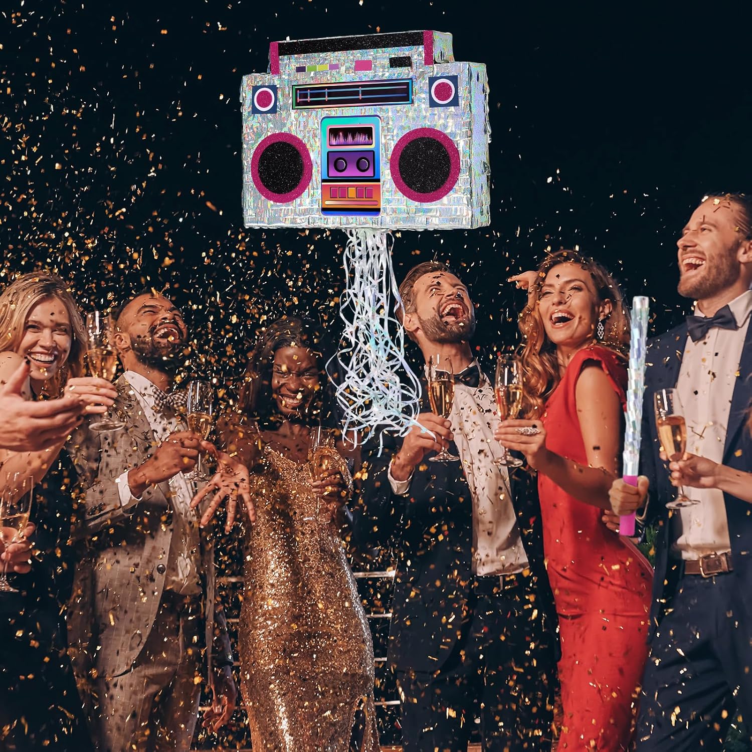 - WIDE USE - This music player piñata, with its strong vintage flavor, is perfect for 80s theme parties, neon parties, 90s nostalgia gifts, retro and disco parties, rock and roll events, kids' birthdays, and fiestas.