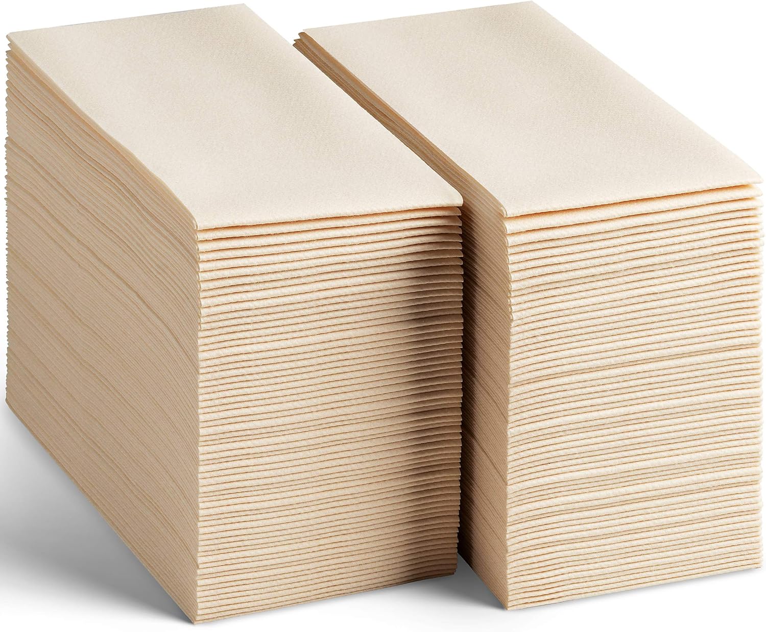 200-Pack Disposable Linen-Feel Caramel Napkins, 12" x 17" Cloth-Like Paper Dinner Napkins For Wedding, Bathroom, Party Or Event