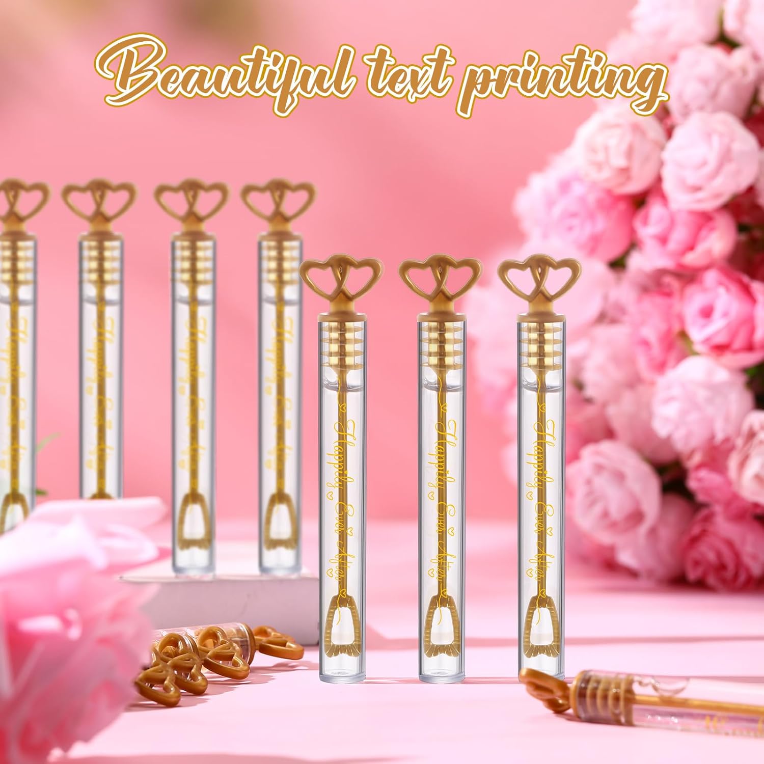 150 Pcs Bubble Wands Bulk for Wedding Party Mini Heart Wand with Bubble Solution for Wedding Bridal Showers Valentine Anniversary Graduation Birthday Supplies(Gold,Happy Ever After)