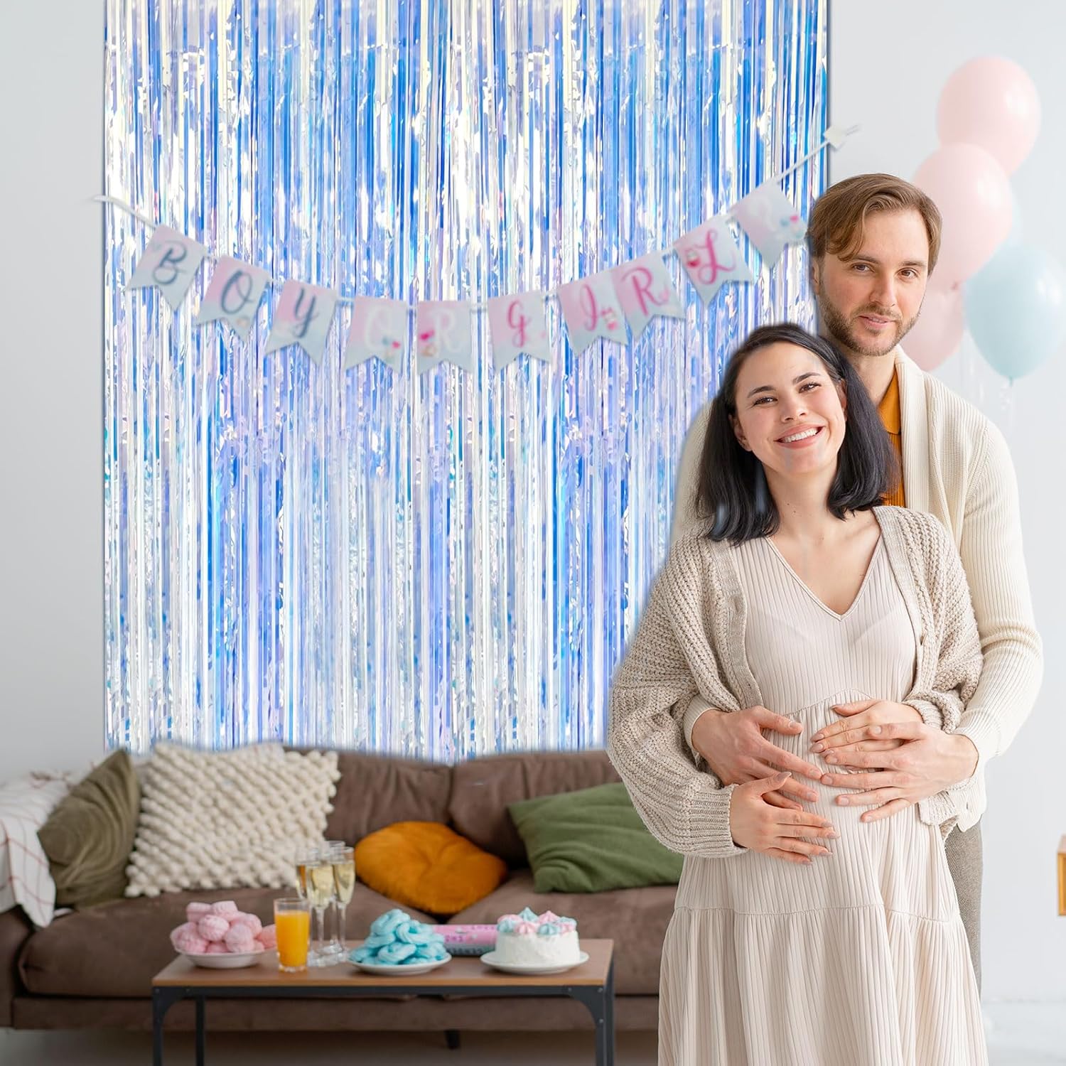 2 Pack Iridescent Party Backdrop Decorations Tinsel Curtain Birthday Decorations Foil Fringe Photo Booth Streamer Backdrop Iridescent Theme Christmas Bachelorette Graduation Party Decorations
