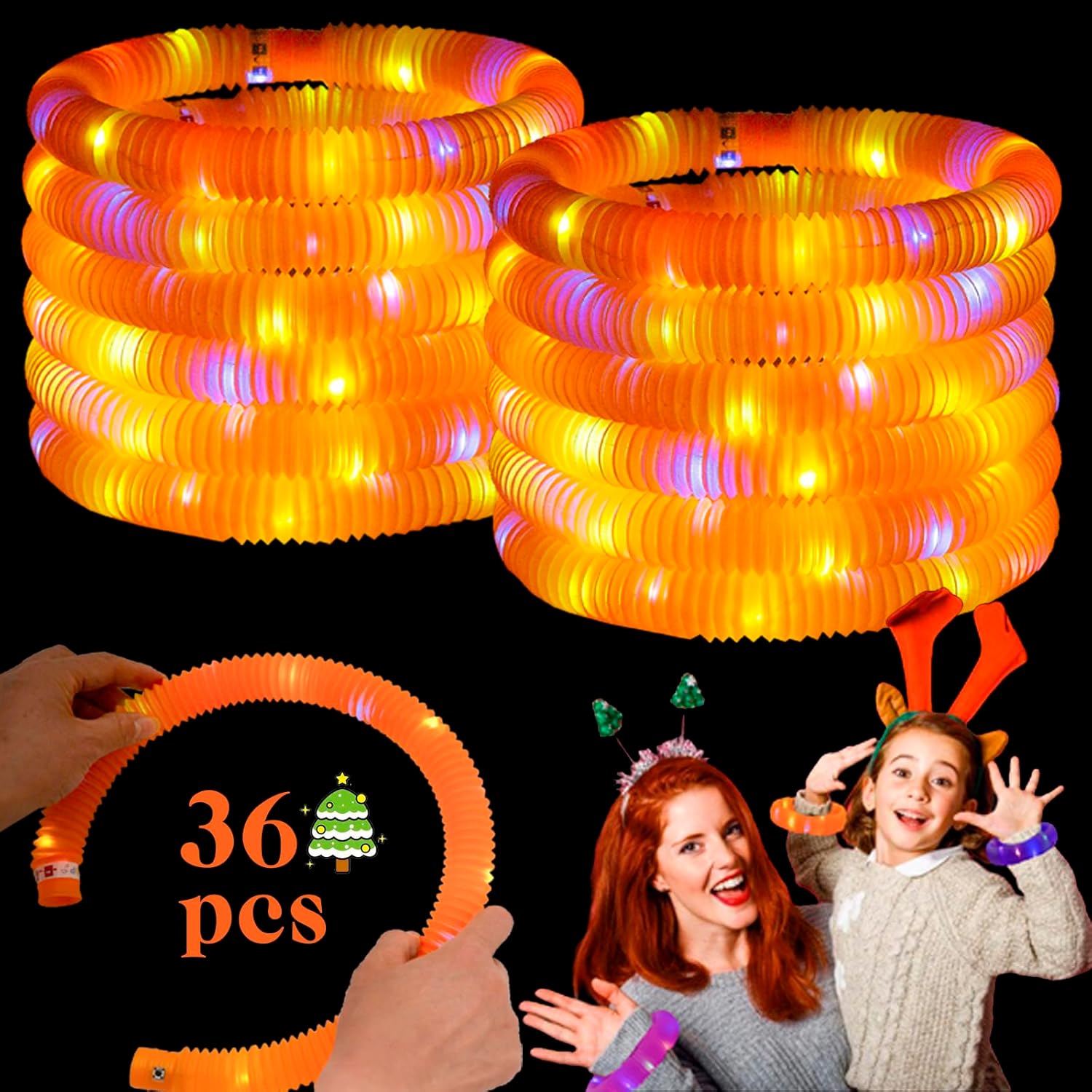 - When you stretch or twist the led pop tubes, it will make a satisfying "pop" sound and special touch, which can help to calm down and relieve anxiety by diverting attention to popping sounds. Nice choice as a playing kids party favors for indoor and outdoor