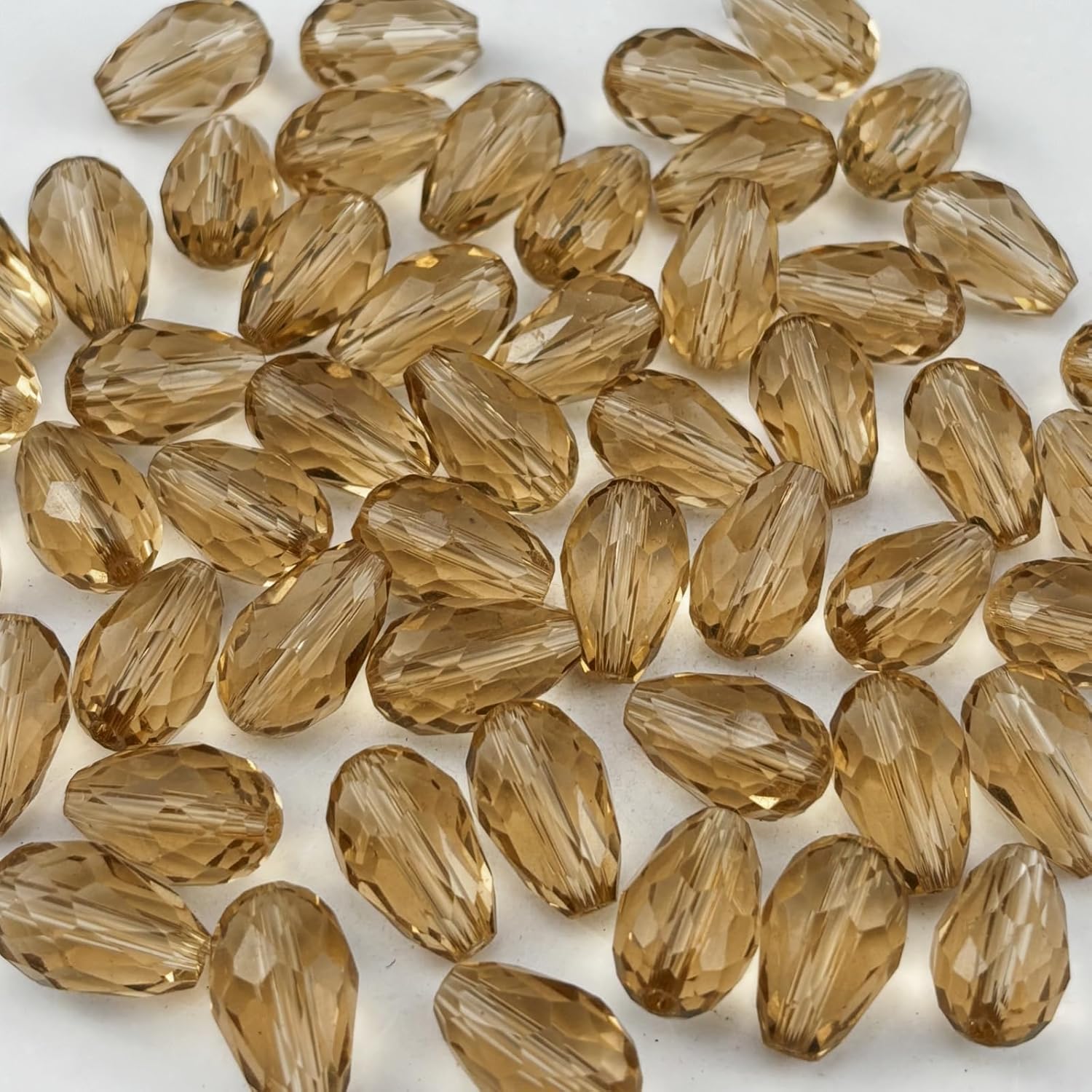 100pcs 8x12mm Teardrop Crystal Glass Beads for Jewelry Making, Faceted Vertical Hole Teardrop Glass Spacer Beads for Wind Chimes Bracelet Earring Necklace DIY Craft(Champagne)