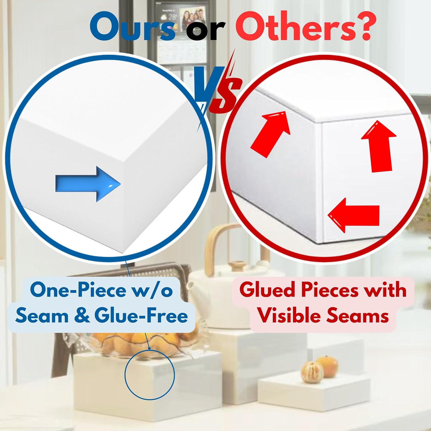 - Multi-Purpose – These white acrylic risers can be used as stands for food platters, jewelry, crafts, or retail displays. With a simple flip, they transform into storage boxes, perfect for holding small household items such as keys, remotes, books, stationery, makeup products, sewing supplies, phones & chargers, small tools, craft supplies, jewelry, and more. Ideal for use in the living room, kitchen, bathroom, bedroom, mudroom, and beyond.