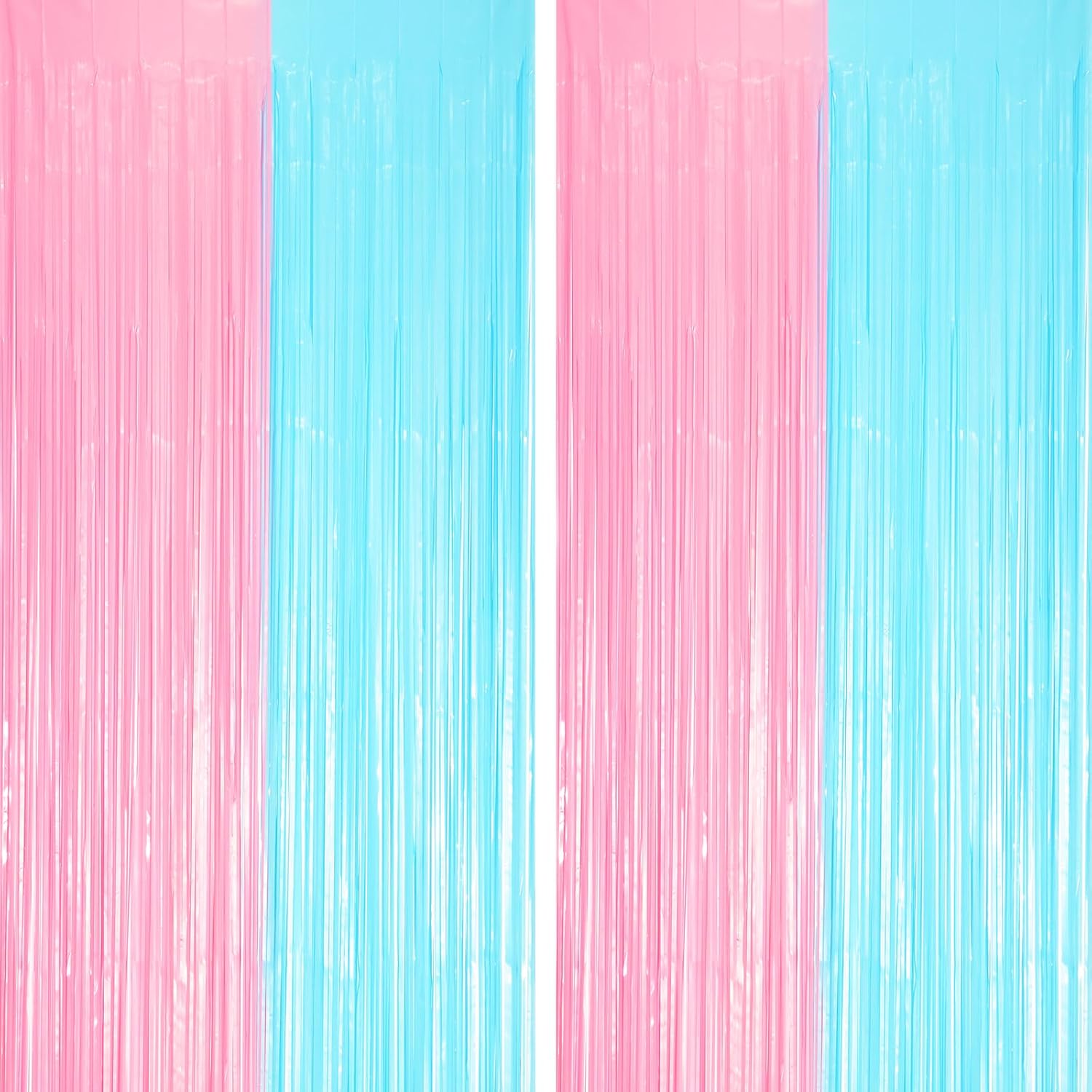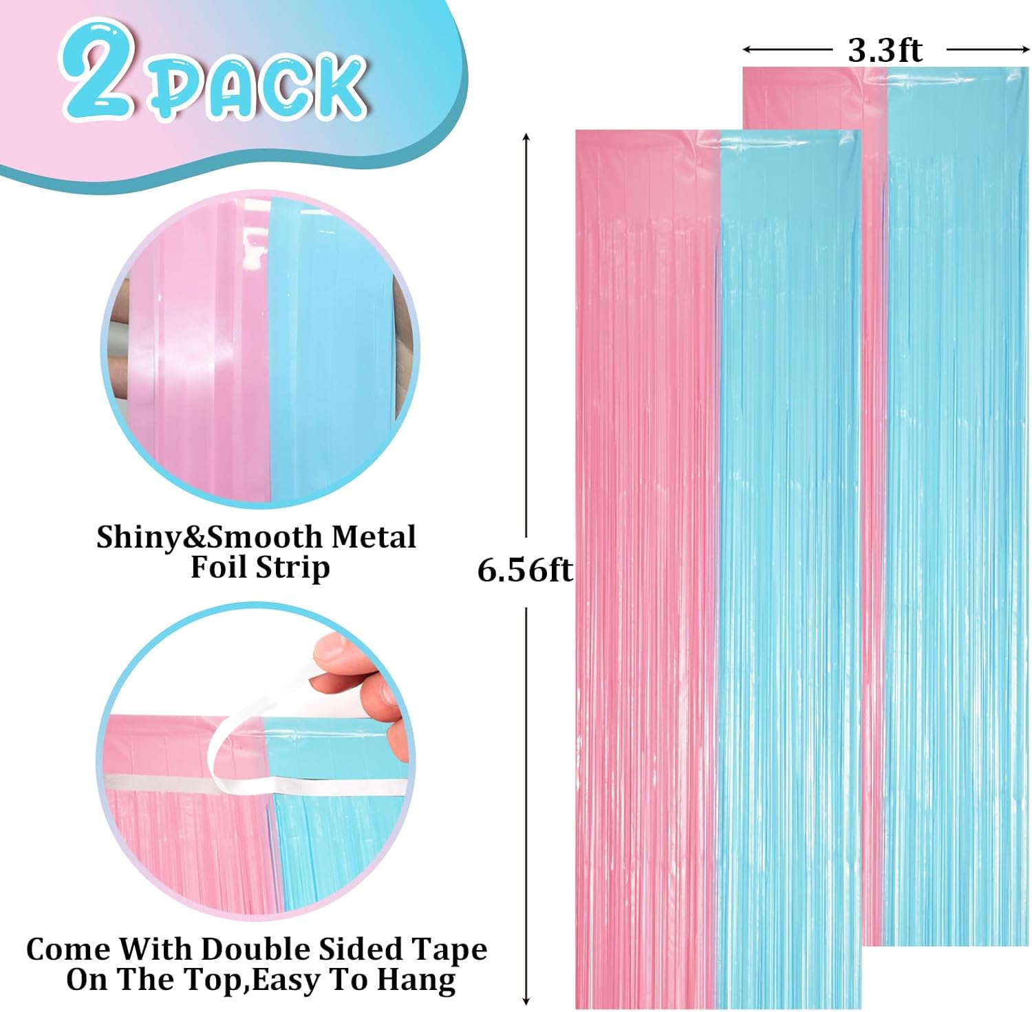 - Stunning Decorative Set: You'll receive 2 pcs gender reveal foil fringe backdrop curtains, each measuring 3.28 ft (wide)Γ6.56 ft (drop). Enough length foil fringe curtains backdrops are perfect for the door or wall to create an impressive decoration