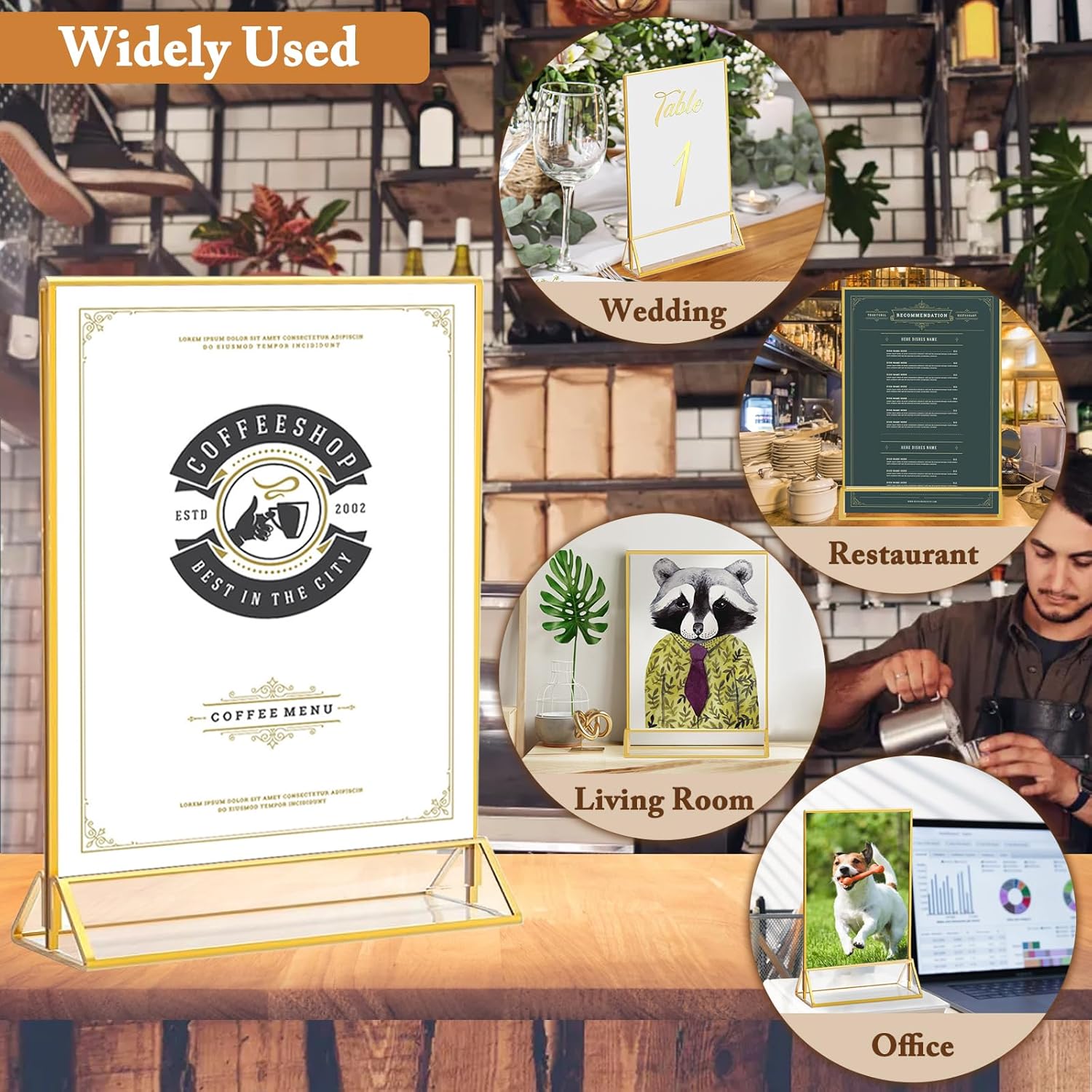 Floroom 6 Pack 8.5x11 Inch Clear Acrylic Sign Holders, Double-Sided Gold Display Stand Picture Frames for Table Numbers, Menus, Flyers, Weddings, and Offices