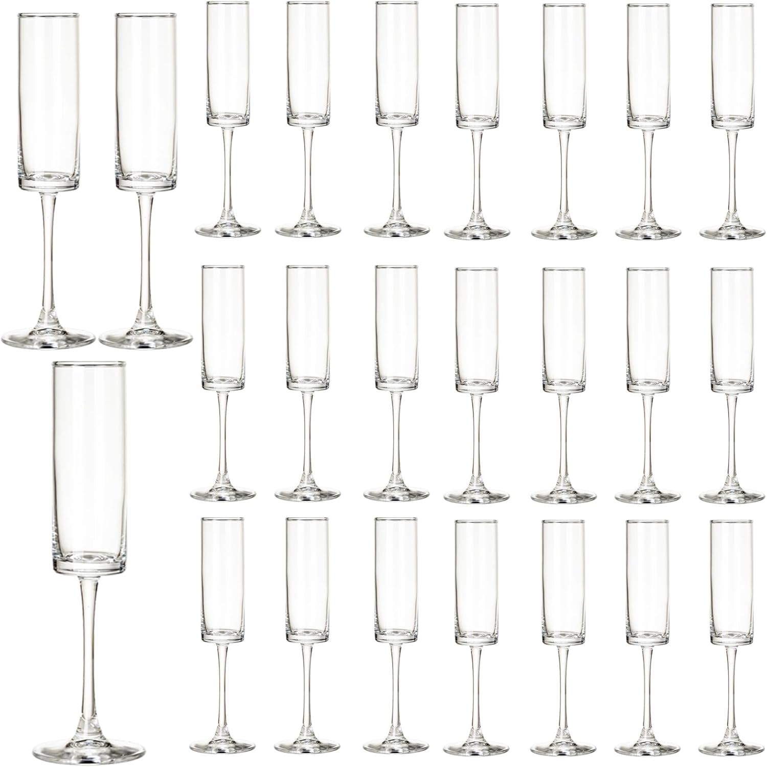 24 Pieces Clear Champagne Flutes 6 OZ Straight Sided Wine Glasses Champagne Long Stem Drinking Colored Glasses,Set of 24 Hand Blown Champagne Flutes Goblets for Wedding Cocktail Cups,Cava, Prosecco