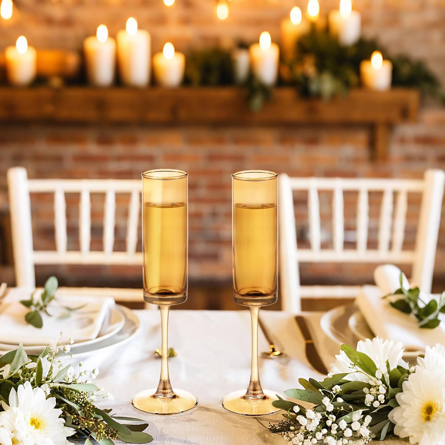 12 Pieces Amber Champagne Flutes 6 OZ Straight Sided Wine Glasses Champagne Long Stem Drinking Colored Glasses,Set of 12 Hand Blown Champagne Flutes Goblets for Wedding Cocktail Cups,Cava, Prosecco