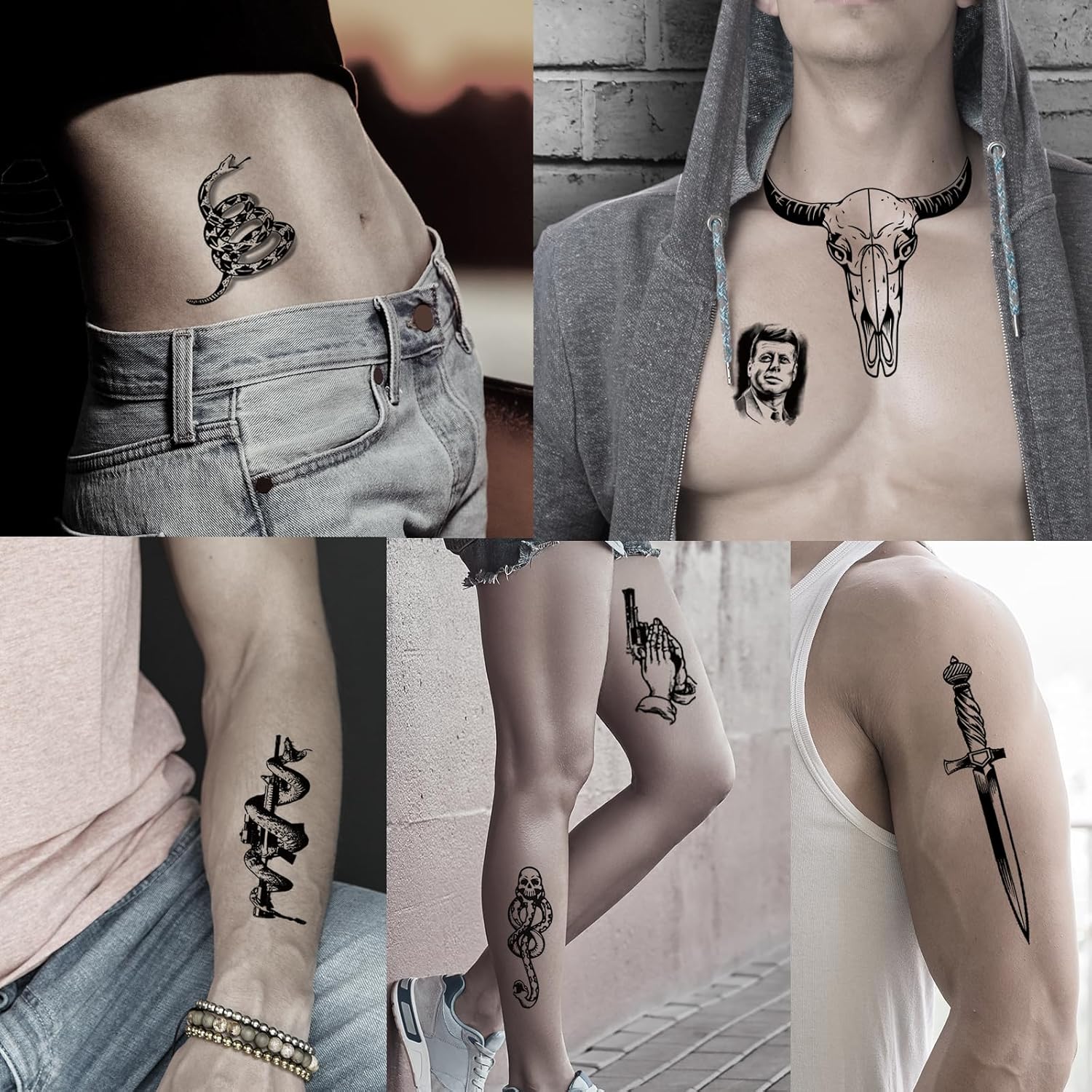 - 【BEAUTY AND REALISTIC】Show off your Halloween fake tattoos anywhere! Like arms, wrists, fingers, ankle, neck, shoulder, feet, legs! You can stick the tattoo to different parts of your body, they are also great for Halloween party, holiday, festivals, traveling and so on.