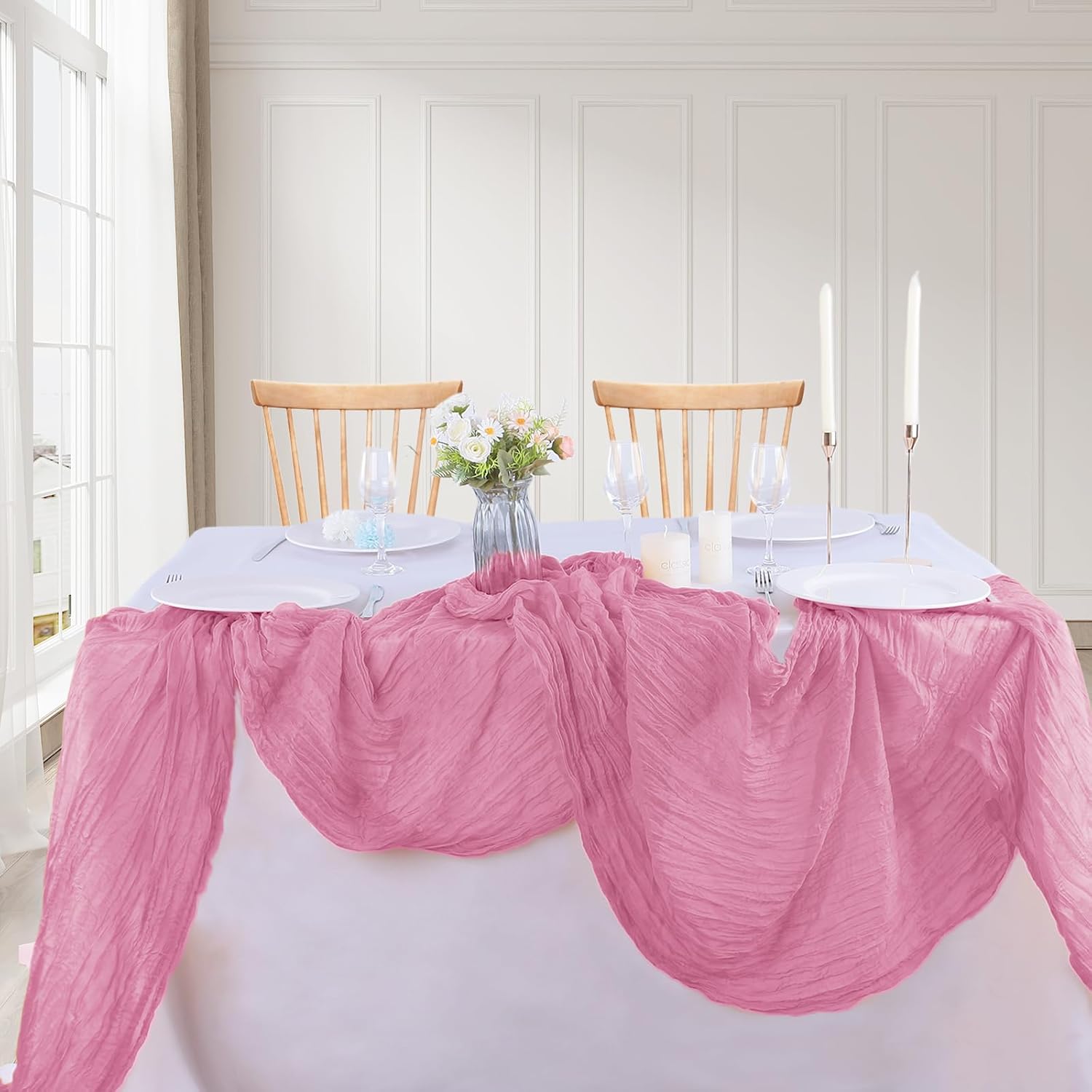 16PCS Dusty Rose Cheesecloth Table Runner 10FT Table Runner Cheesecloth 35x120Inch Boho Gauze Cheese Cloth Table Runner Long Rustic Sheer Table Runners for Wedding Party Baby Bridal Shower Table Decor