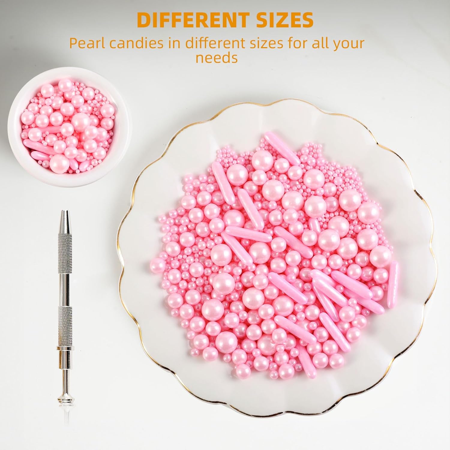 - 【Multi-Purpose】: Pink pearls candy decorations is widely used, it can be used for decoration of various foods, such as cakes, cookies, ice cream, cupcakes, donuts, etc. Sprinkles for cake decorating are suitable for weddings, birthdays, Halloween, Christmas and other theme parties, it can make your baking full of festive atmosphere!